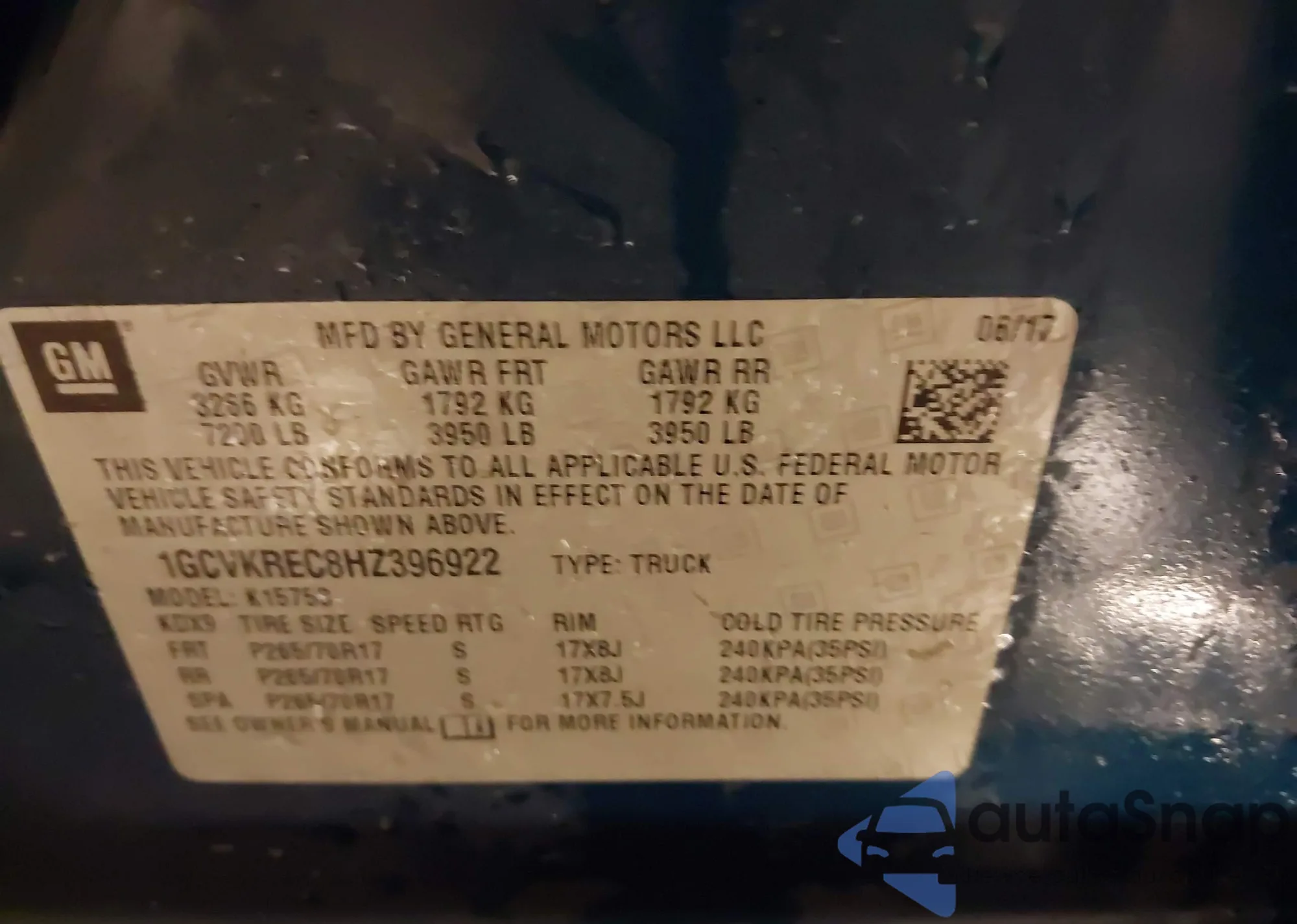 LOT: 43829423 VIN: 1GCVKREC8HZ396922