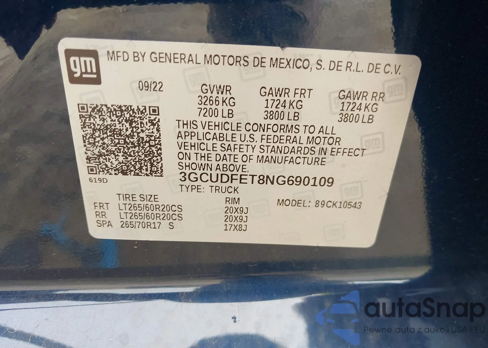 LOT: 37831912 VIN: 3GCUDFET8NG690109