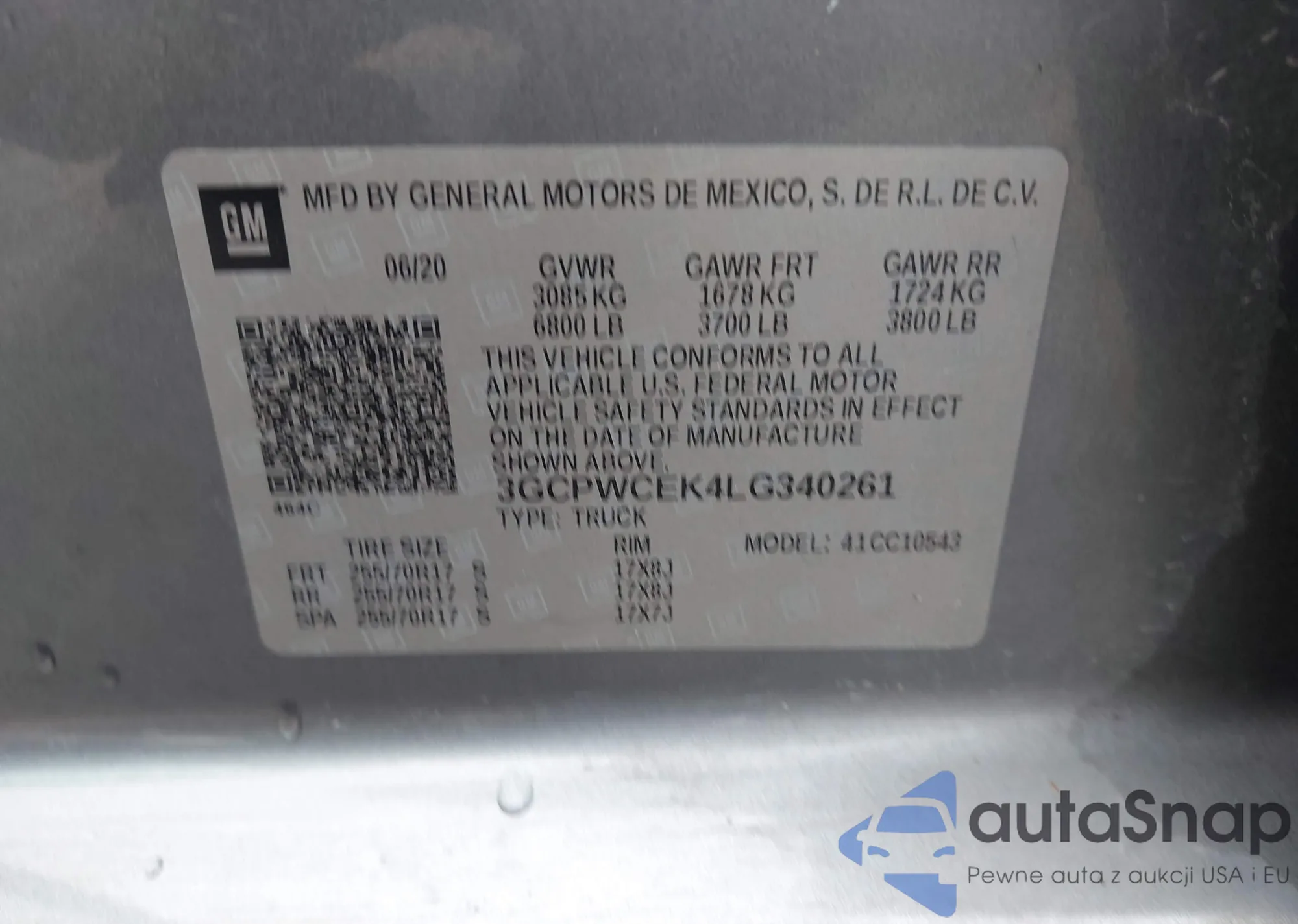 LOT: 43810904 VIN: 3GCPWCEK4LG340261