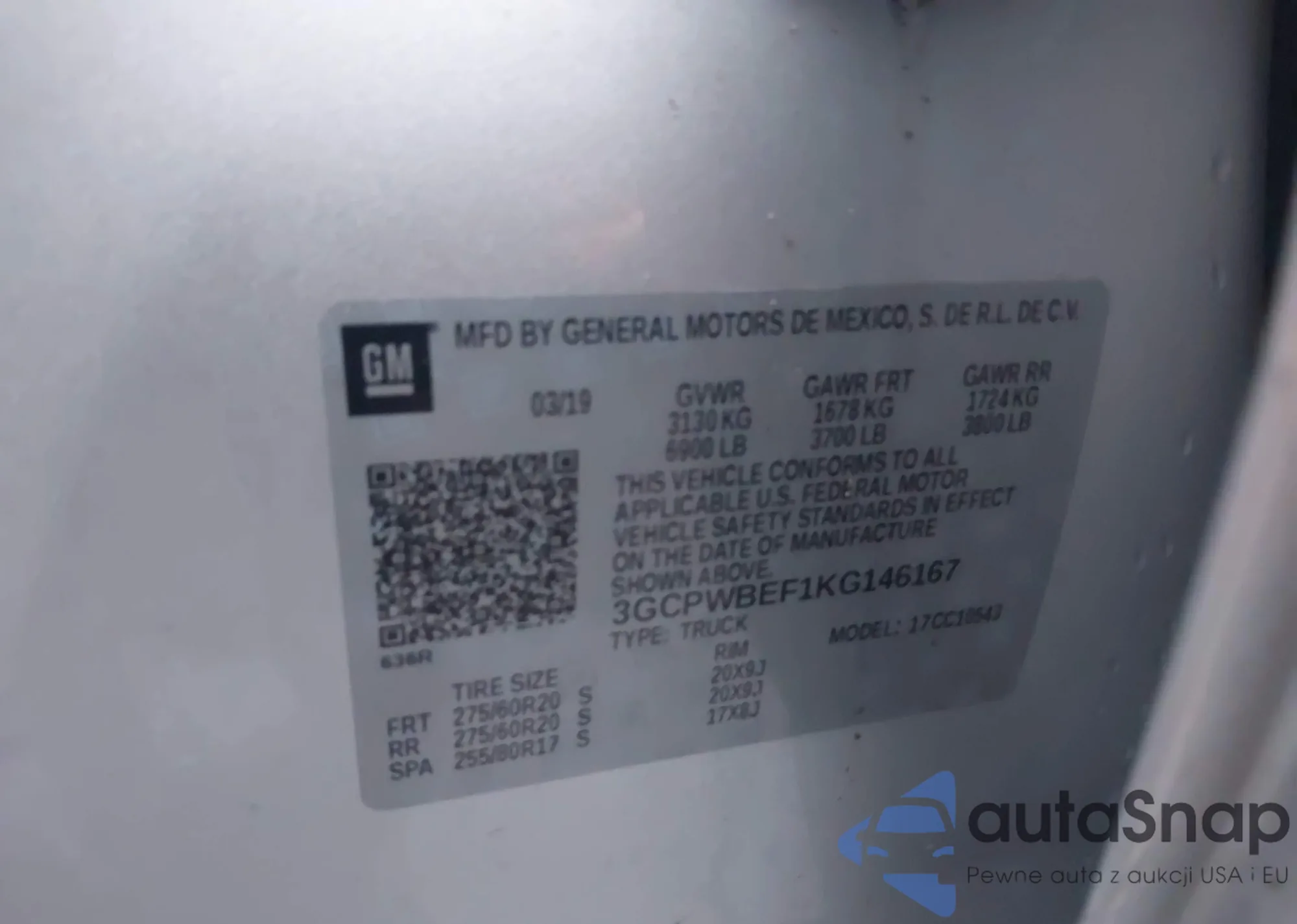 • VIN 3GCPWBEF1KG146167