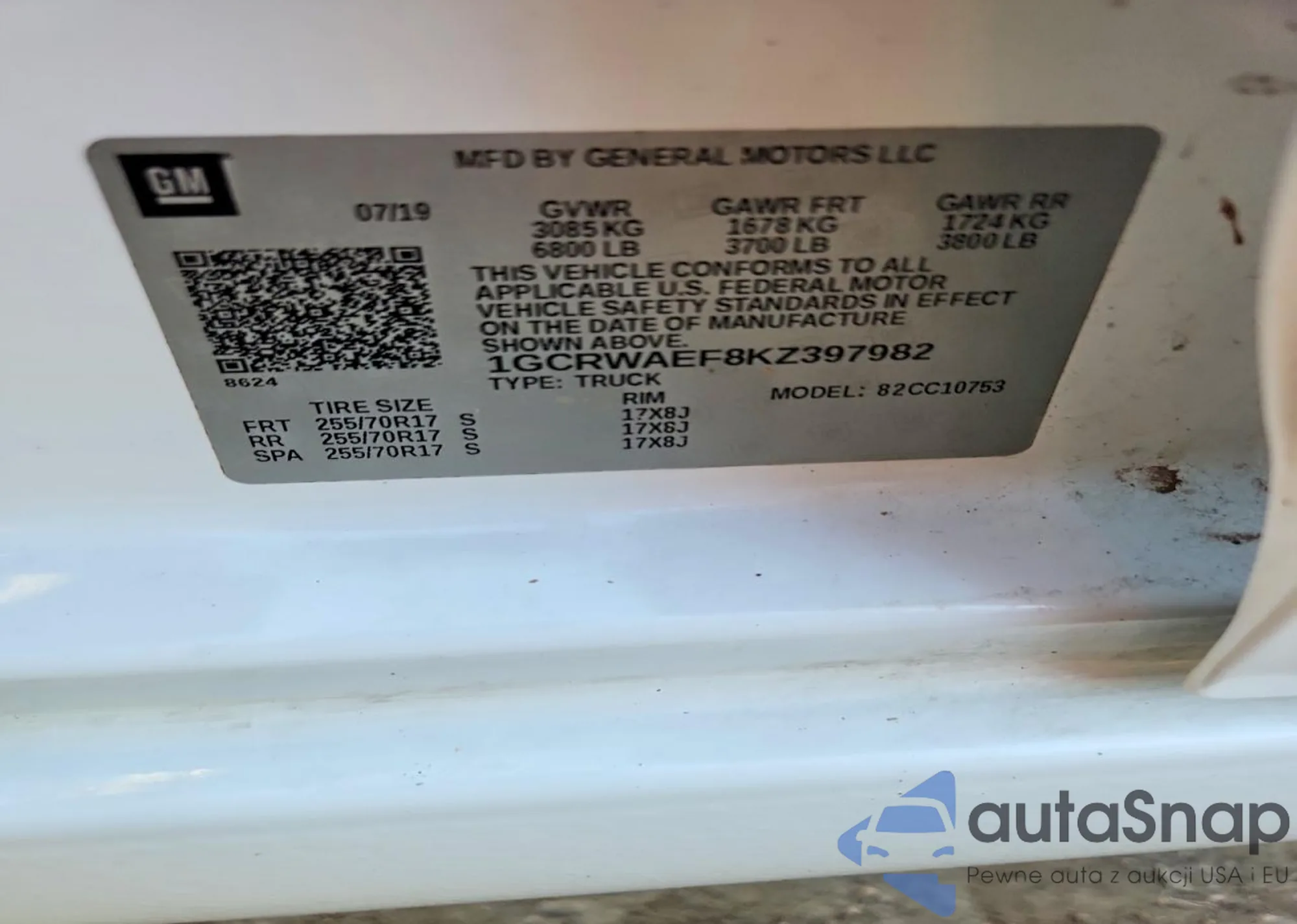 • VIN 1GCRWAEF8KZ397982