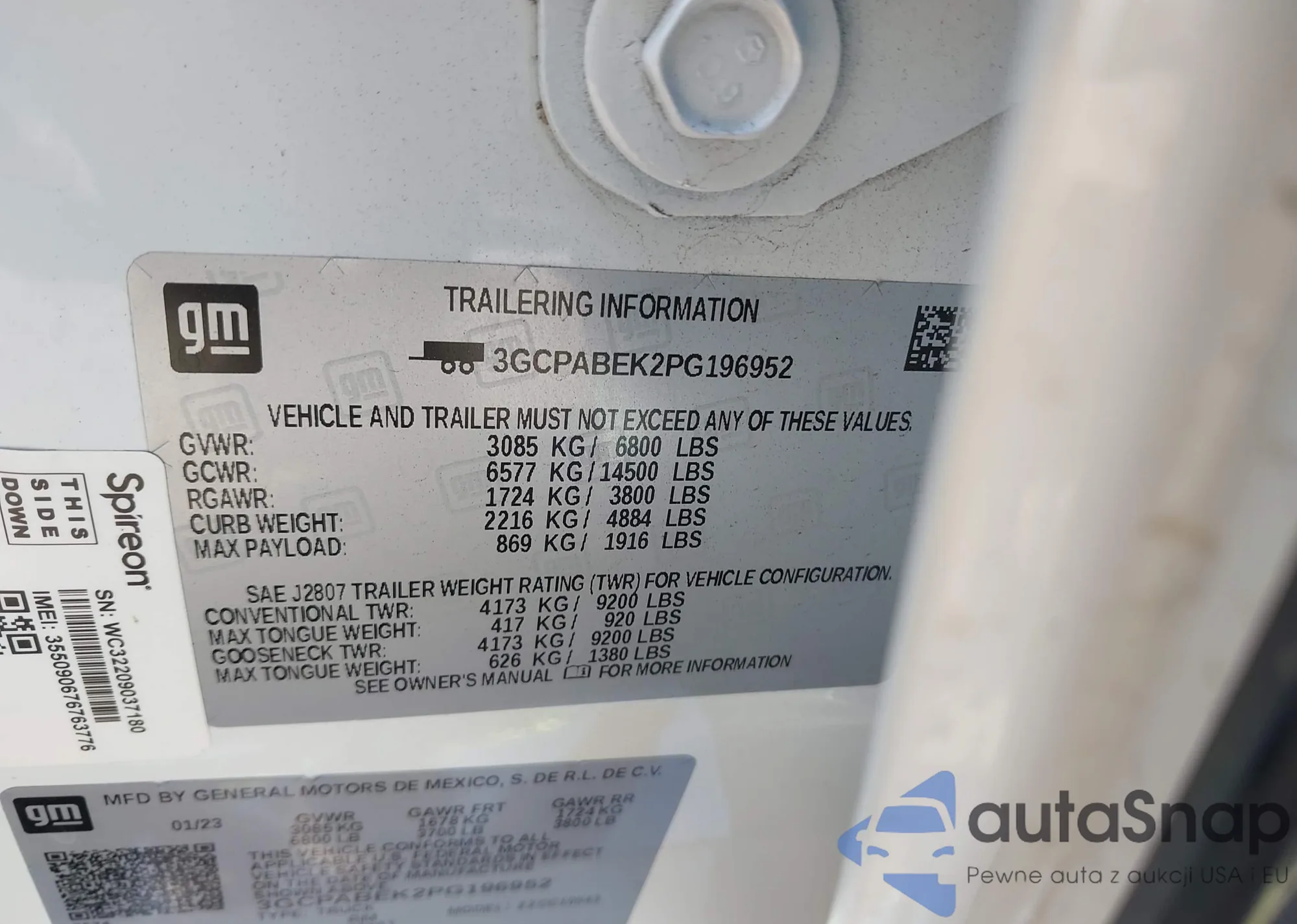 • VIN 3GCPABEK2PG196952