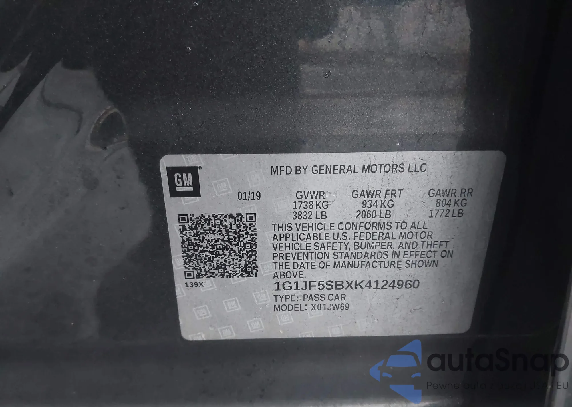 • VIN 1G1JF5SBXK4124960