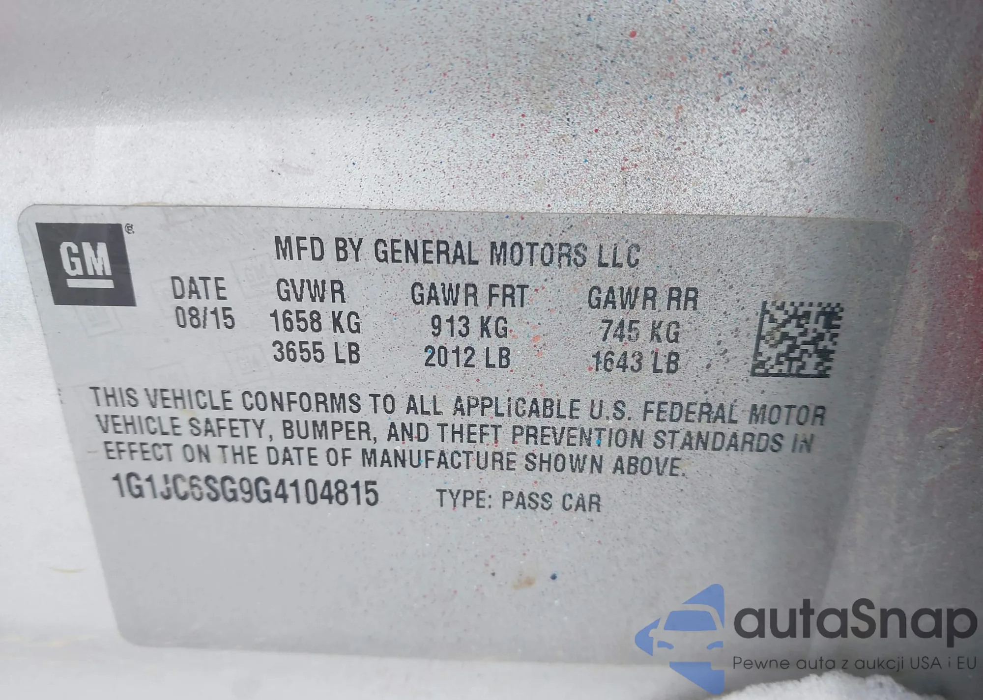 LOT: 42935853 VIN: 1G1JC6SG9G4104815