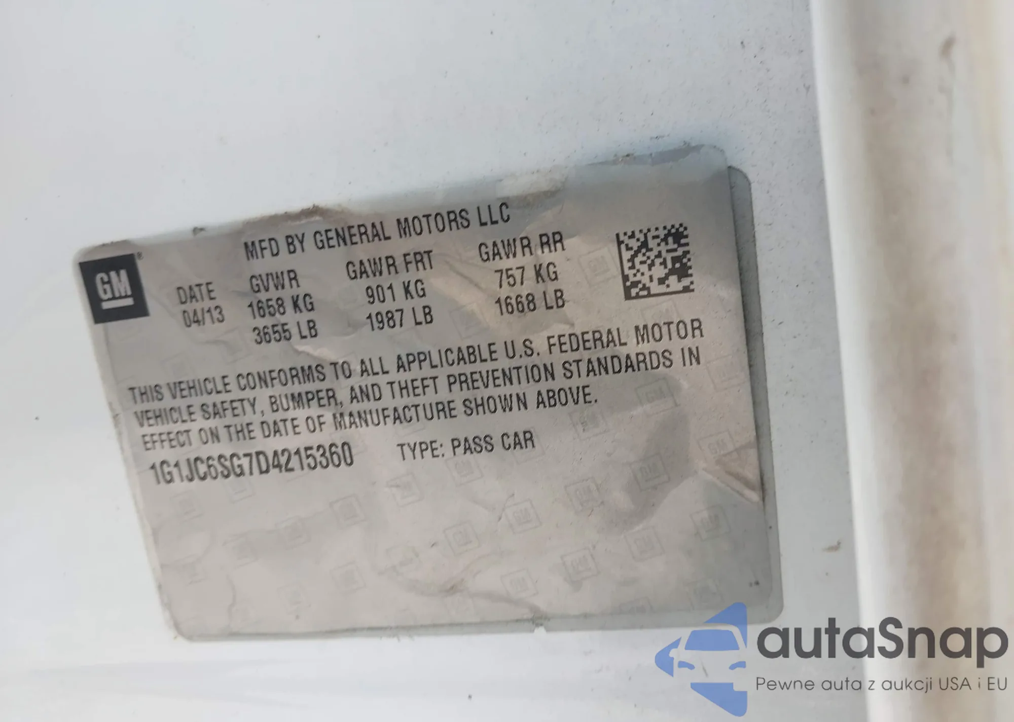 • VIN 1G1JC6SG7D4215360