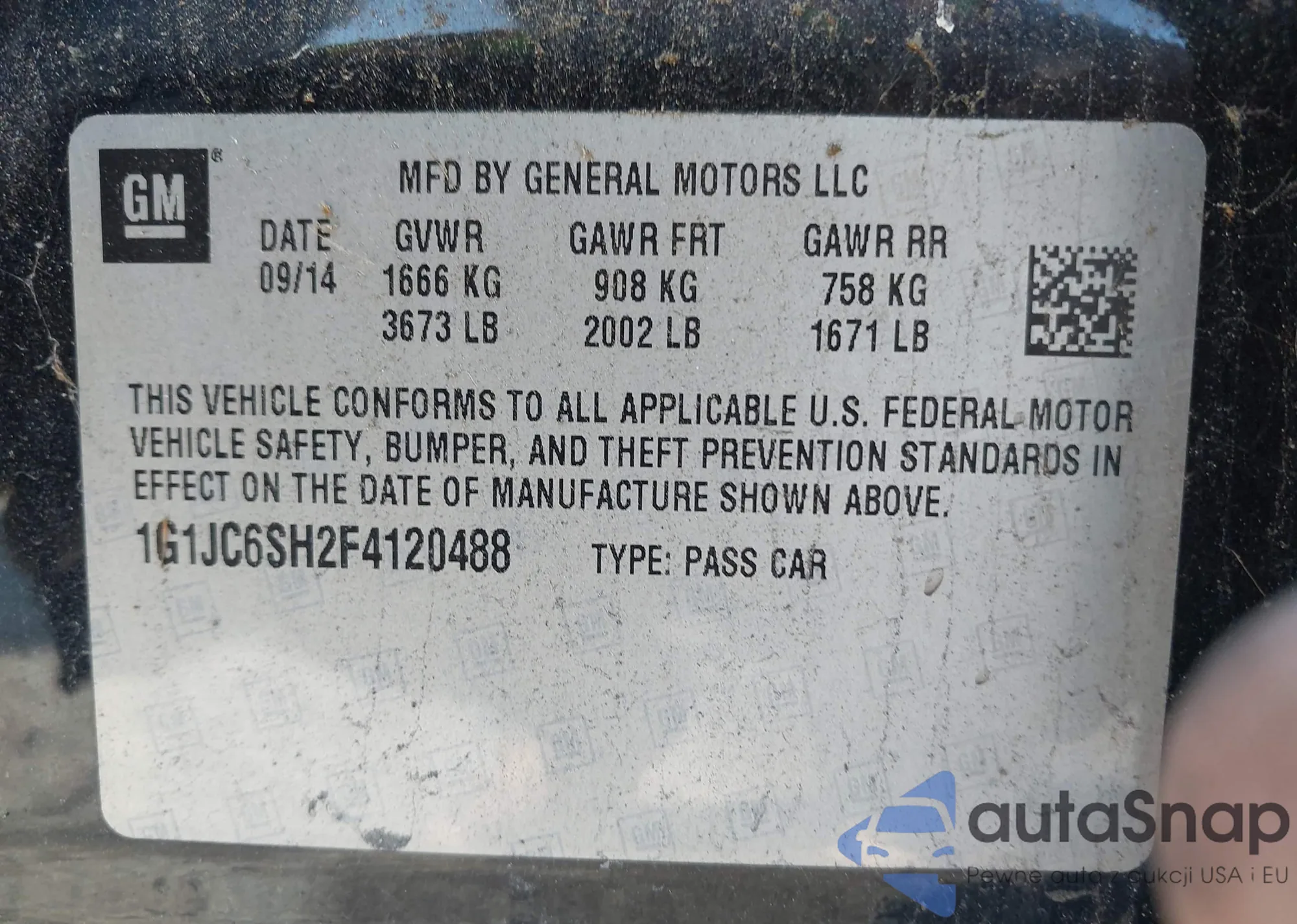 LOT: 92296455 VIN: 1G1JC6SH7F4104366