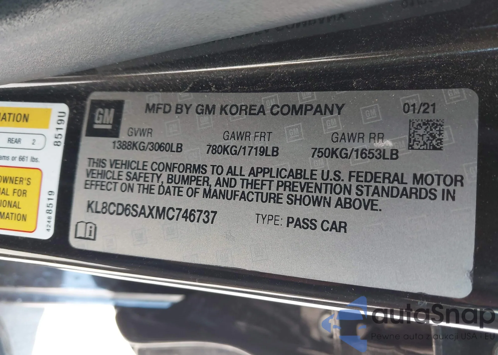 • VIN KL8CD6SAXMC746737