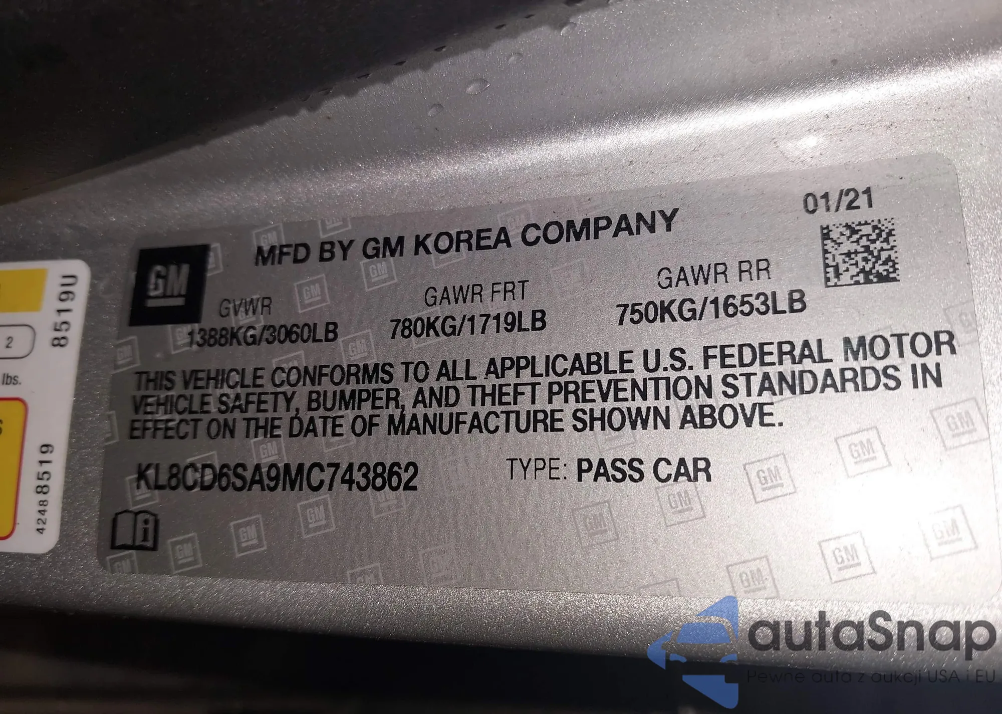 • VIN KL8CB6SA8MC714651