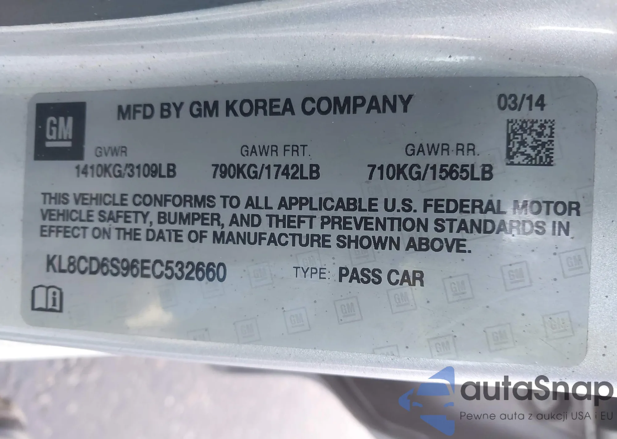 • VIN KL8CD6S96EC532660