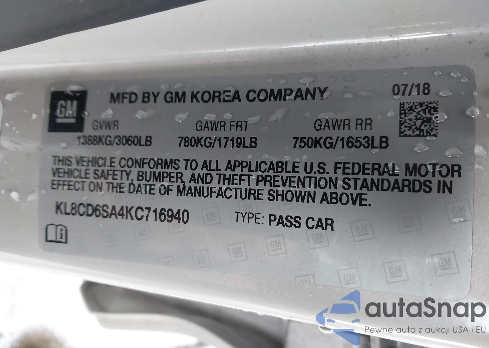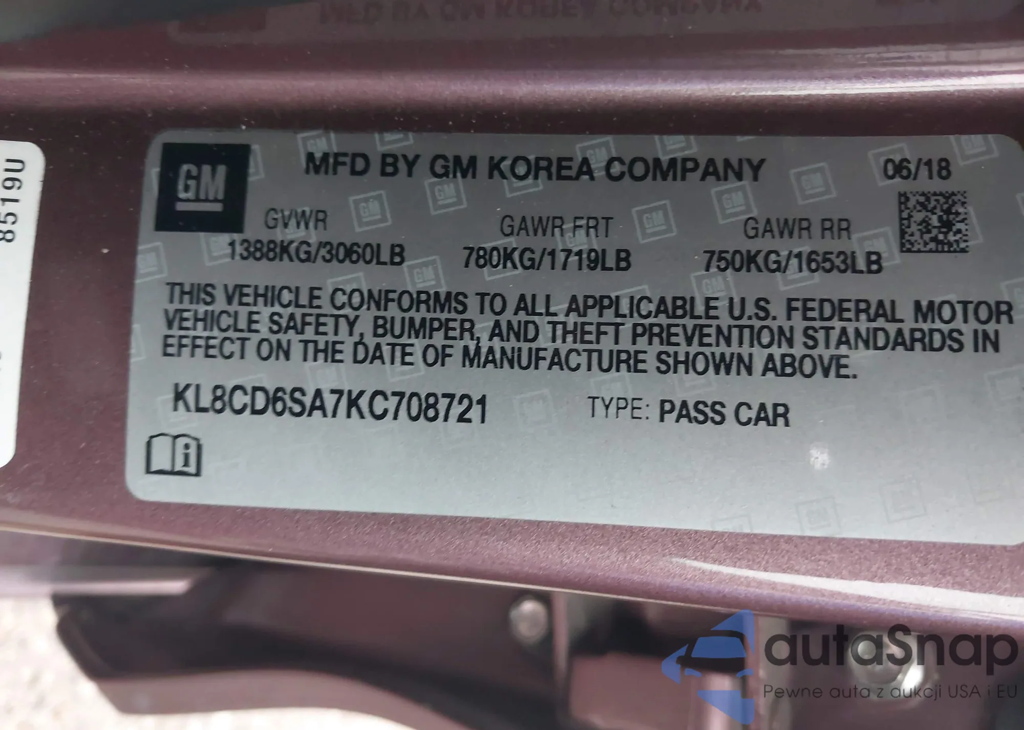 • VIN KL8CD6SA7KC708721
