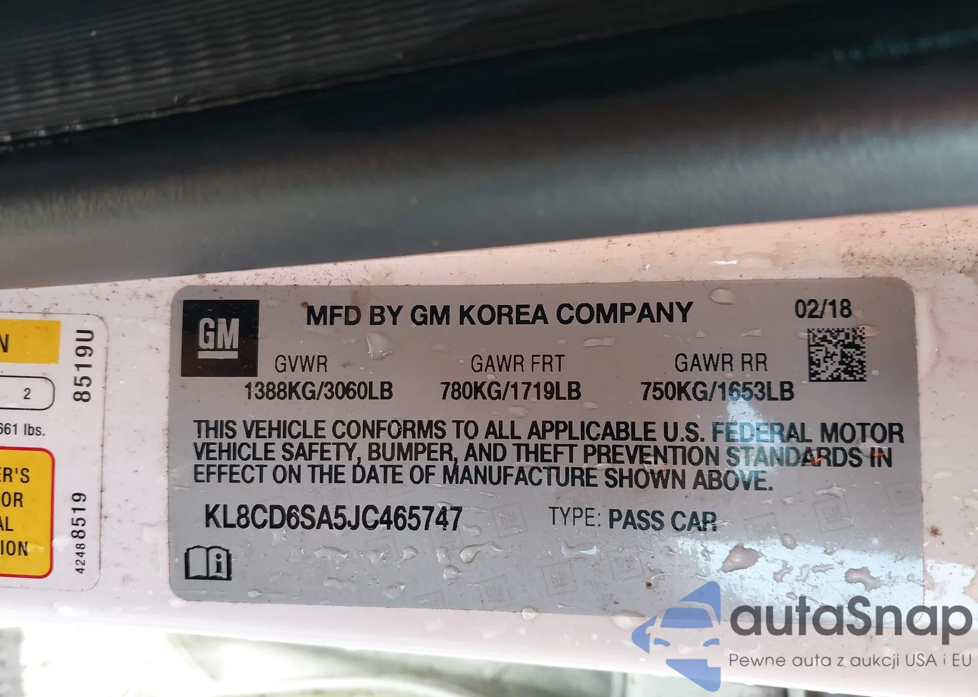 • VIN KL8CA6SA5KC786441