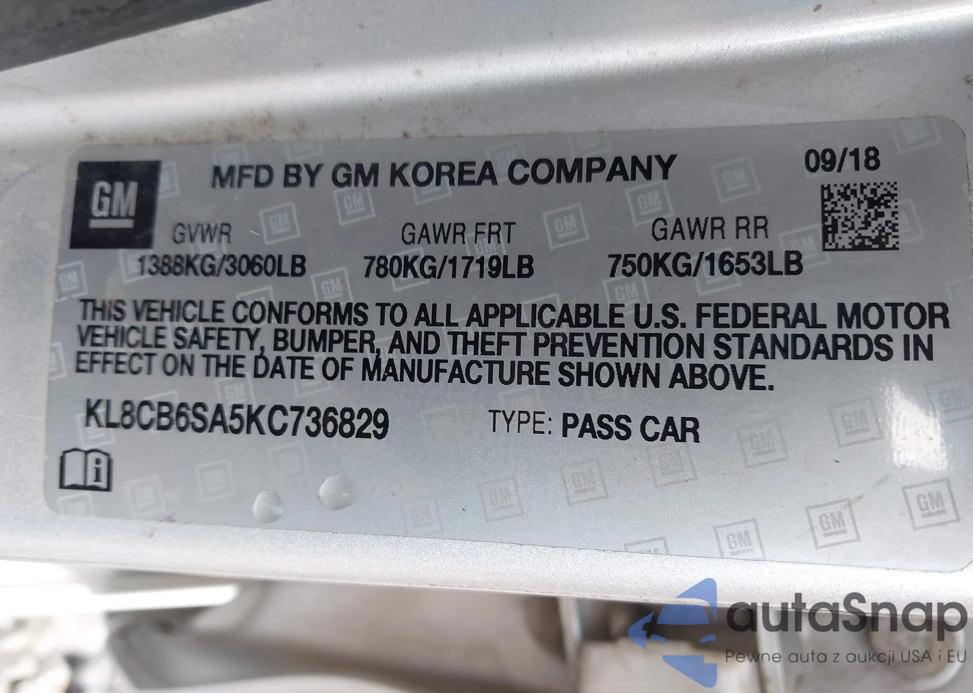 • VIN KL8CB6SA8KC801981