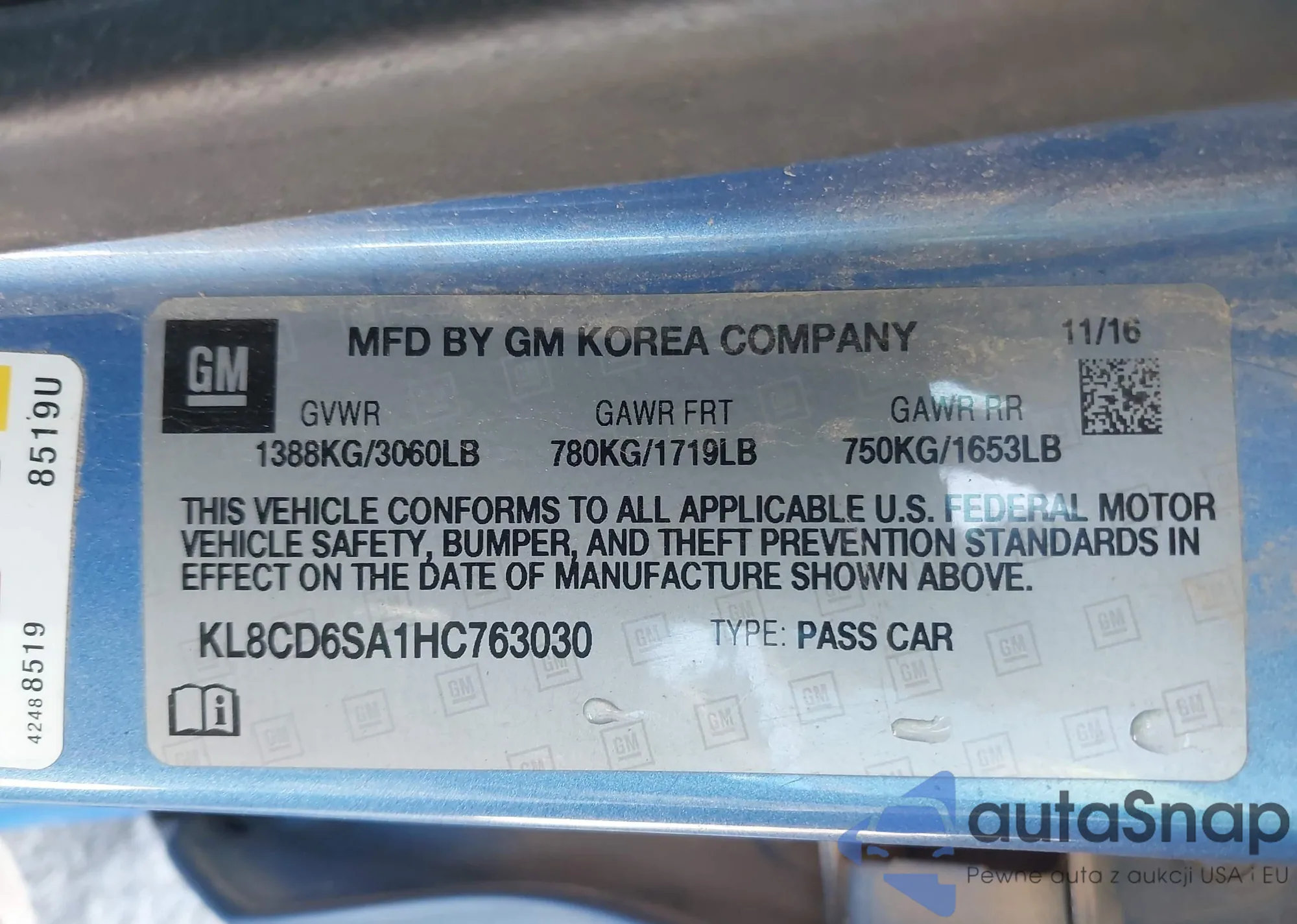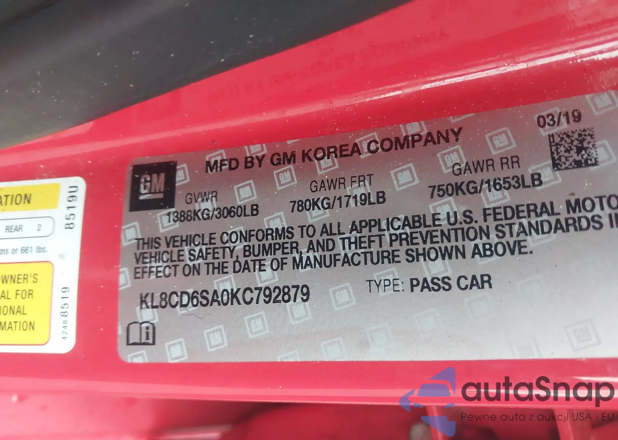 • VIN KL8CB6SA8KC711651