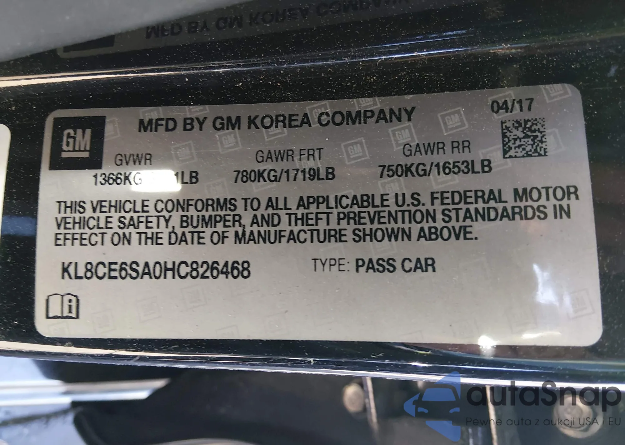 • VIN KL8CE6SA0HC826468