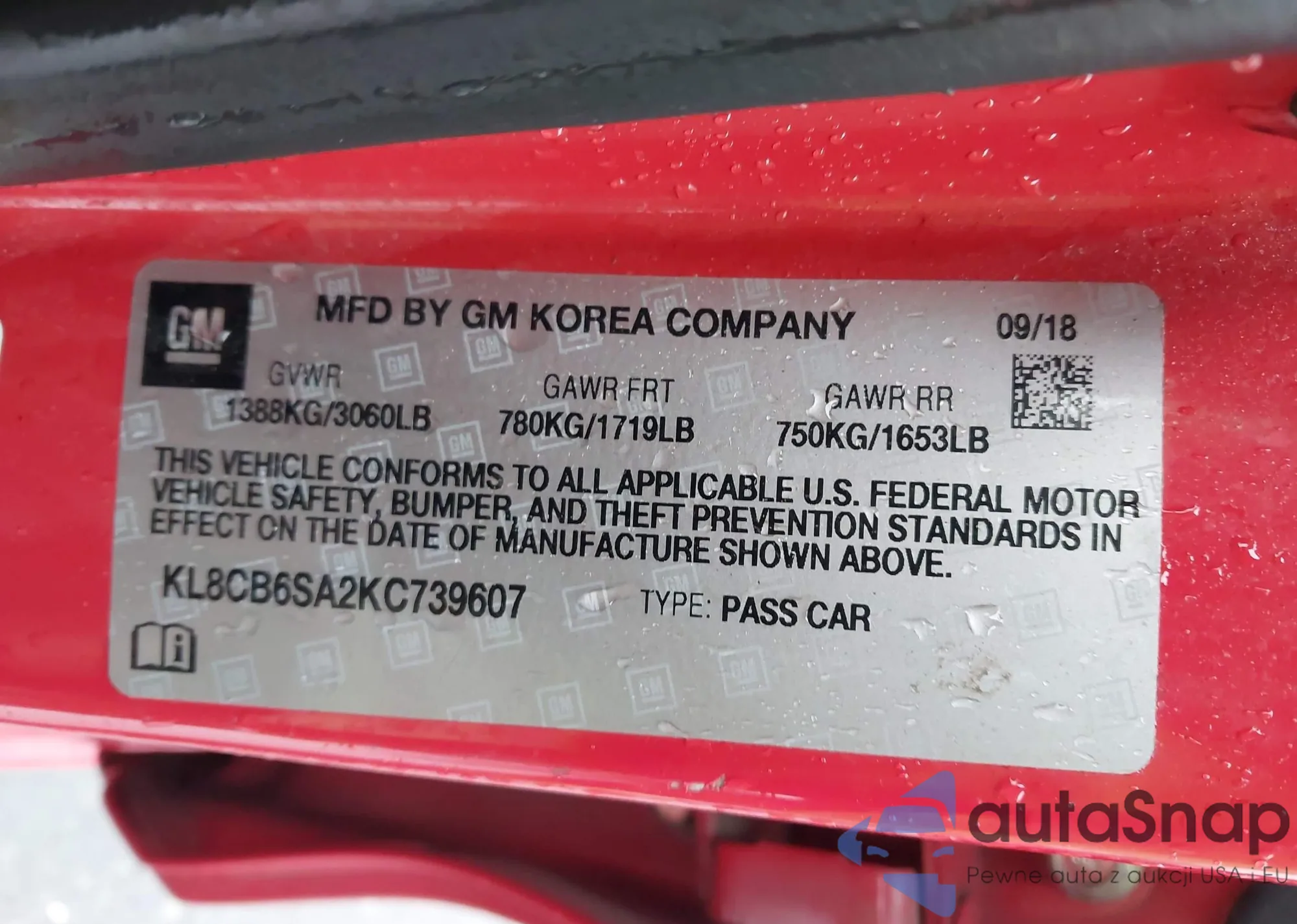 • VIN KL8CB6SA2KC739607