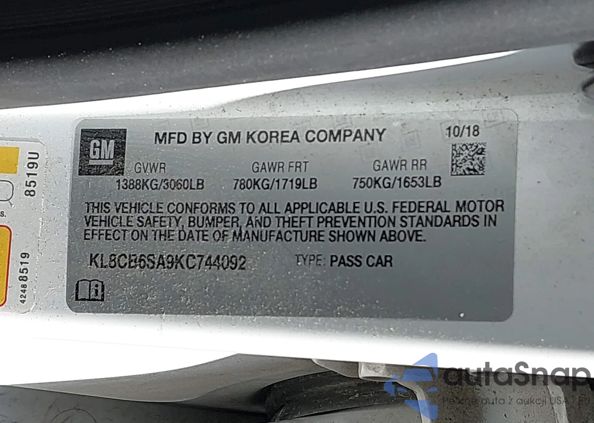 • VIN KL8CB6SA9KC744092