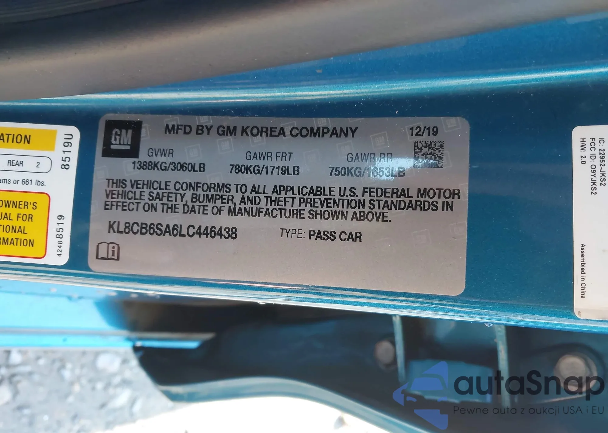 • VIN KL8CB6SA6LC446438