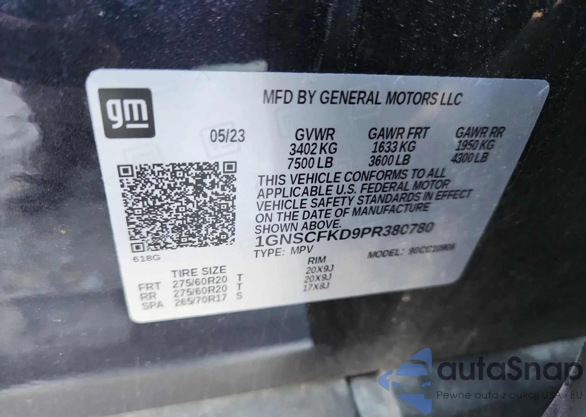 LOT: 92677685 VIN: 1GNSCFKD9PR380780