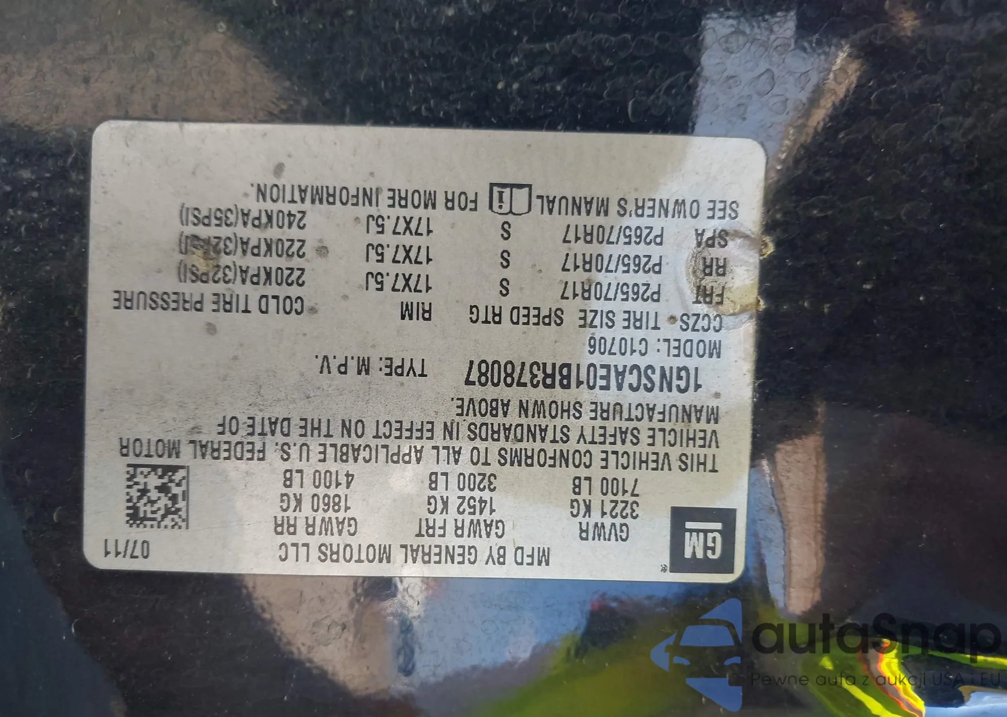 LOT: 43325341 VIN: 1GNSCAE01BR378087