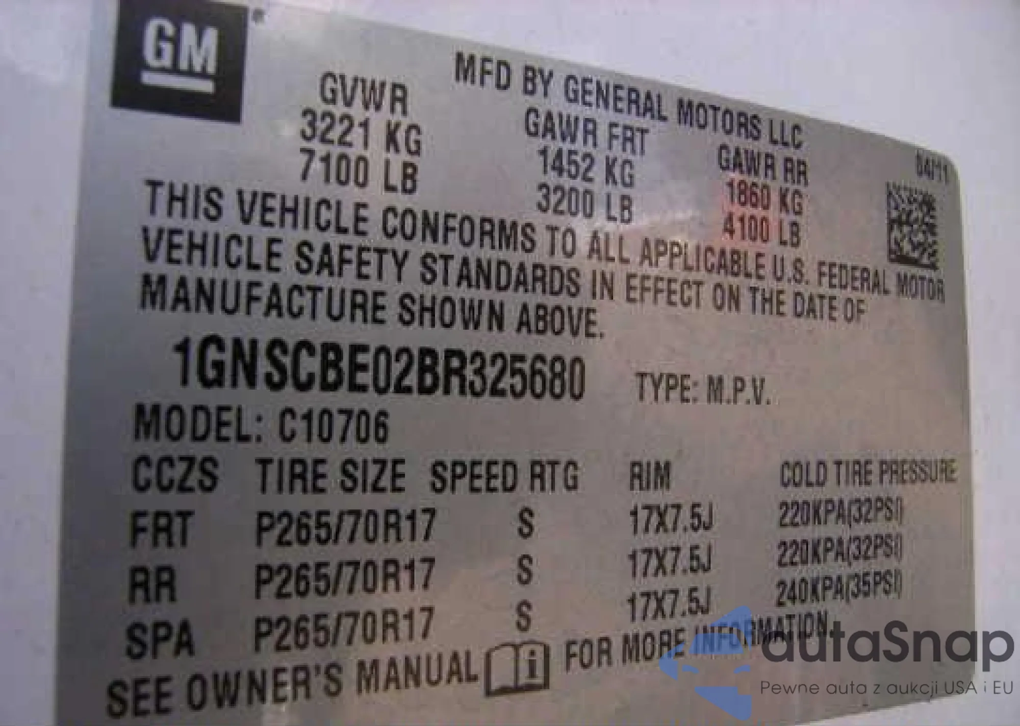 LOT: 71074125 VIN: 1GNSCCE03BR220474