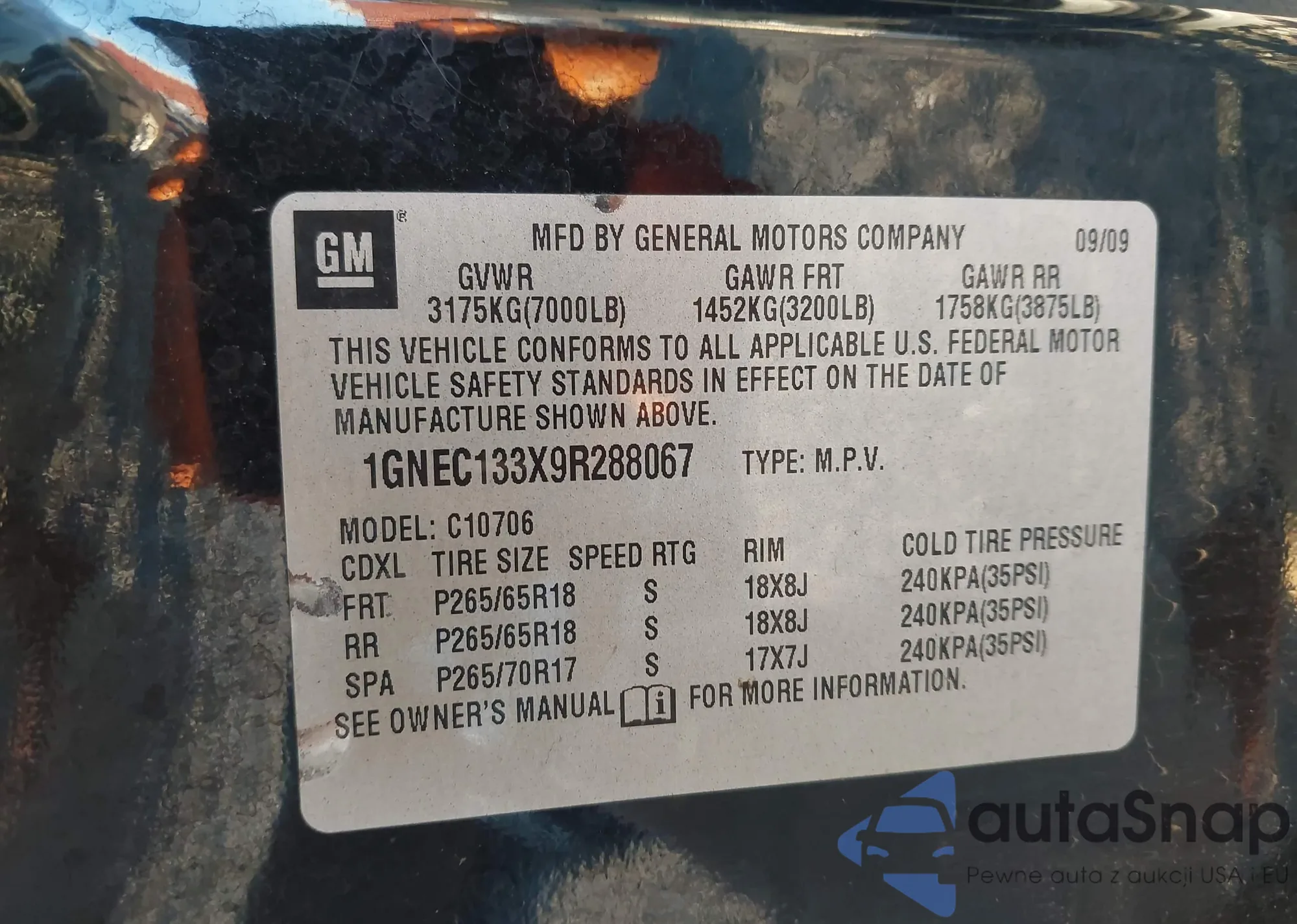 LOT: 43500081 VIN: 1GNEC133X9R288067