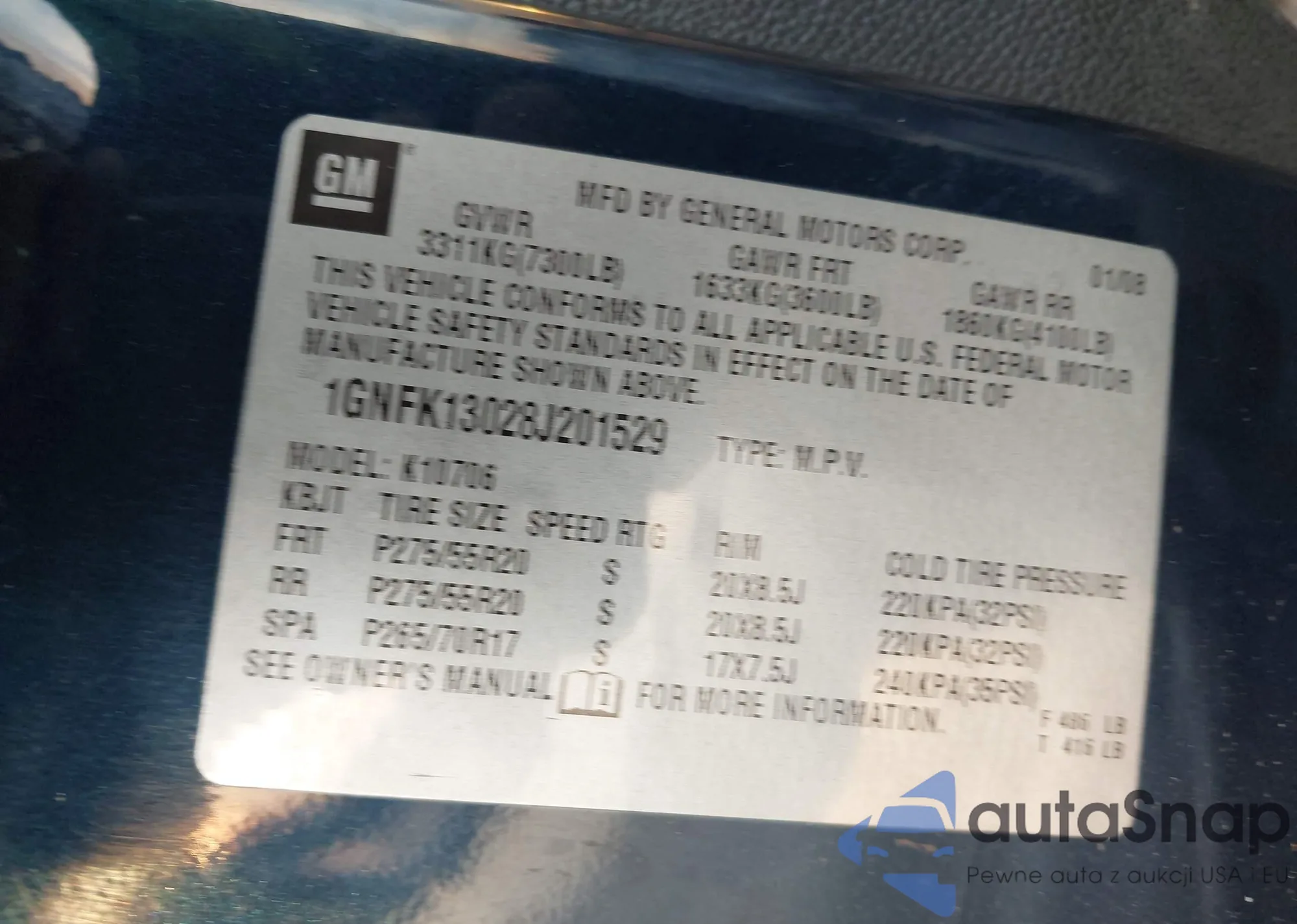 • VIN 1GNFK13028J201529