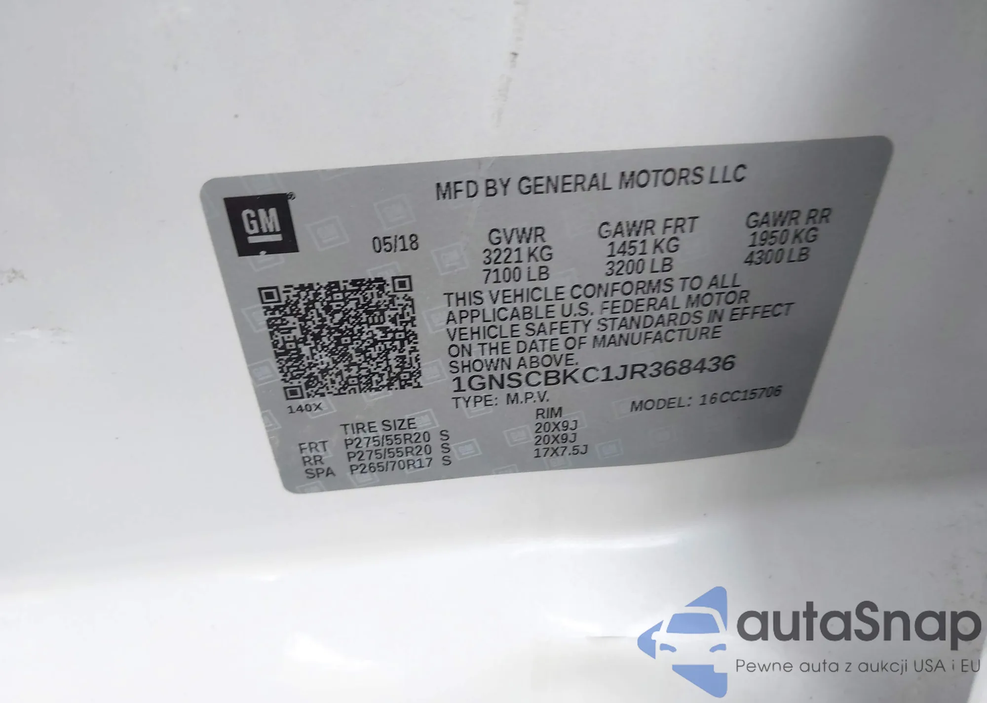 LOT: 56328973 VIN: 1GNSKDEC2JR214215