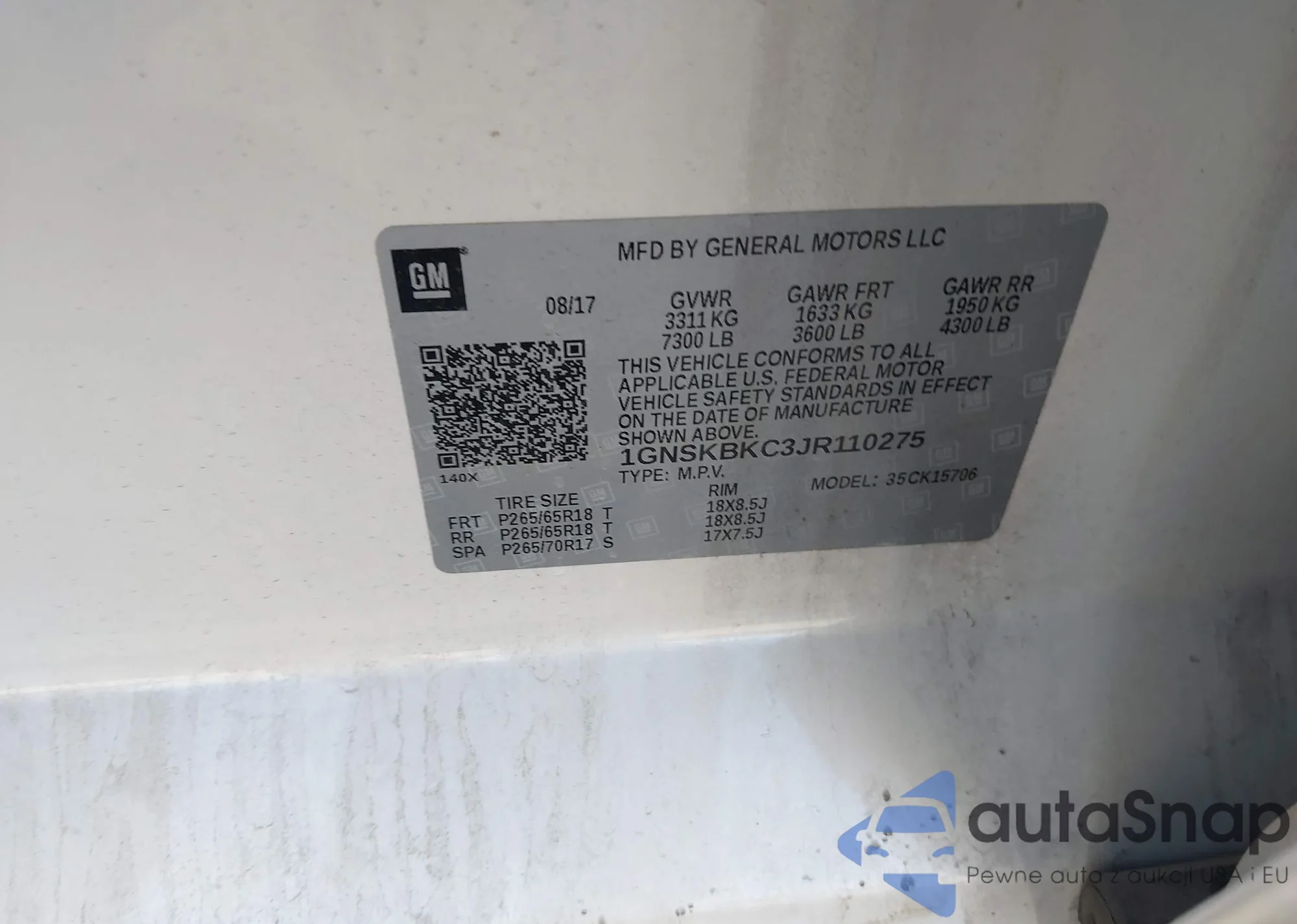 • VIN 1GNSKBKC3JR110275