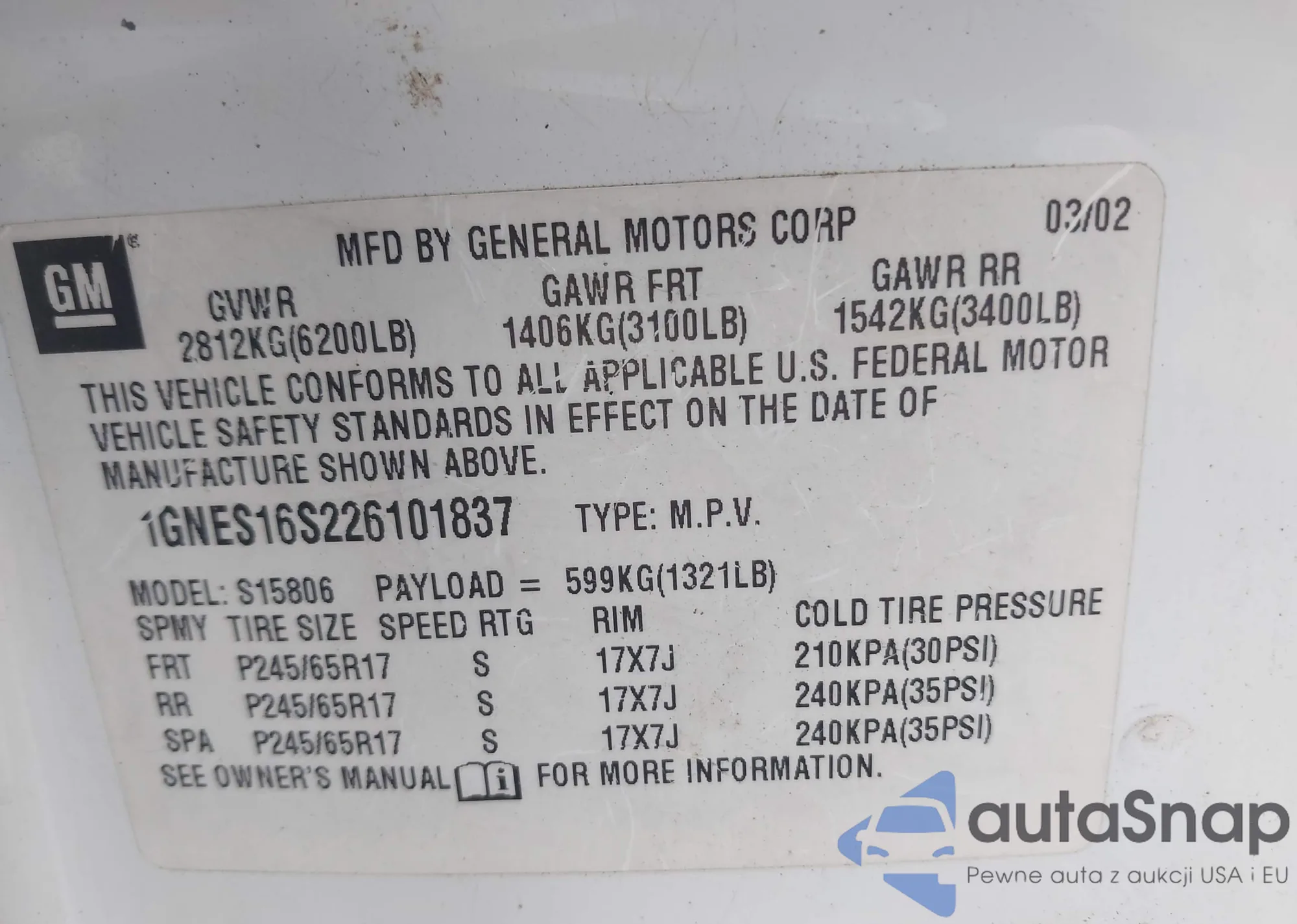 LOT: 44296086 VIN: 1GNDT13S072252106