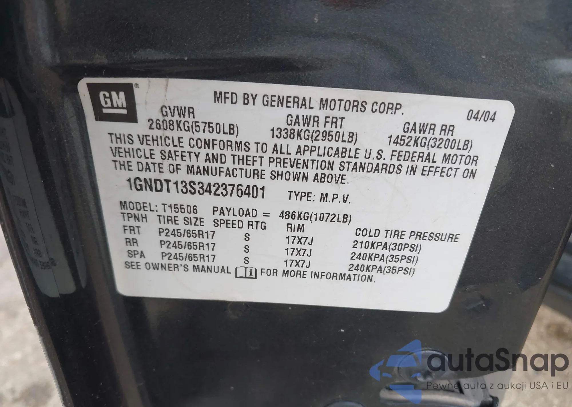 • VIN 1GNDT13S342376401