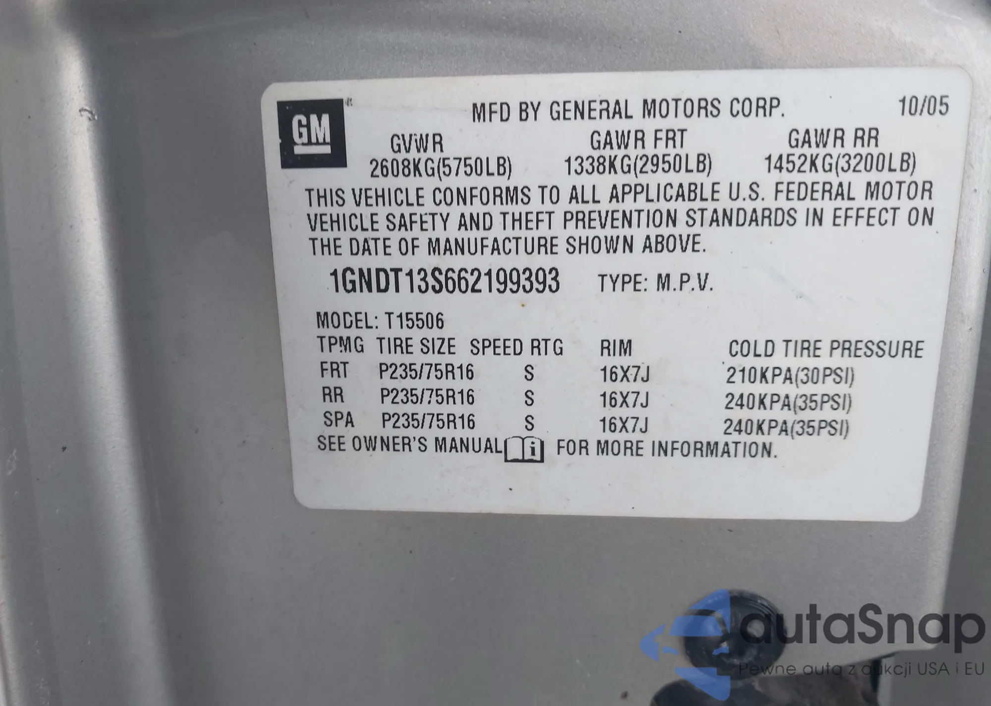 LOT: 44352155 VIN: 1GNDT13S062140002