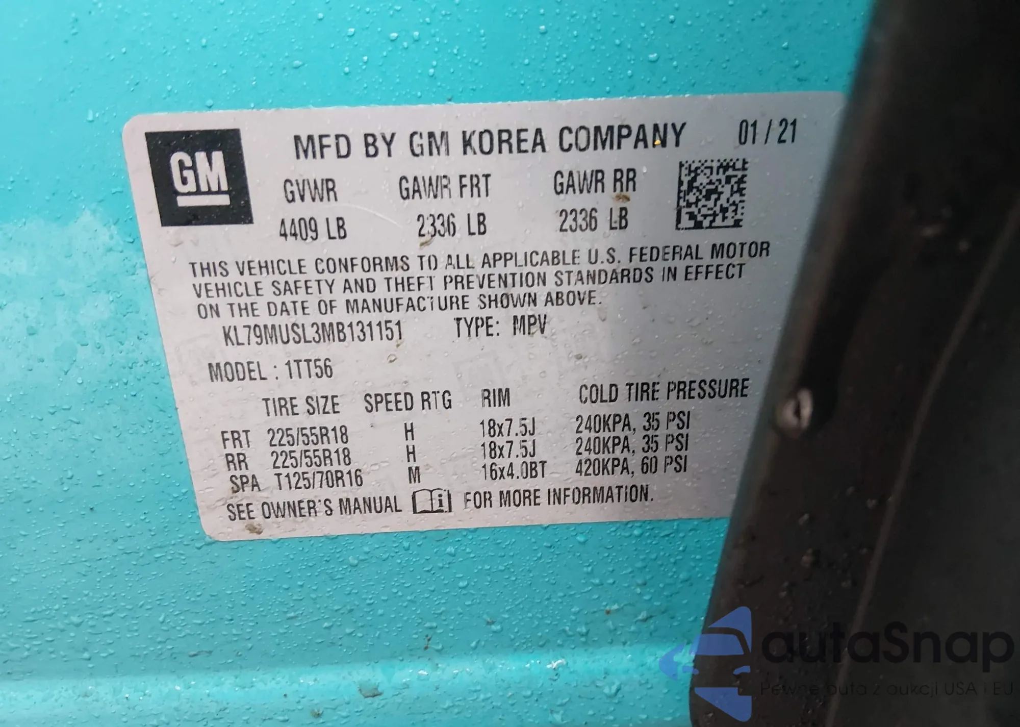 • VIN KL79MRSL6MB017772