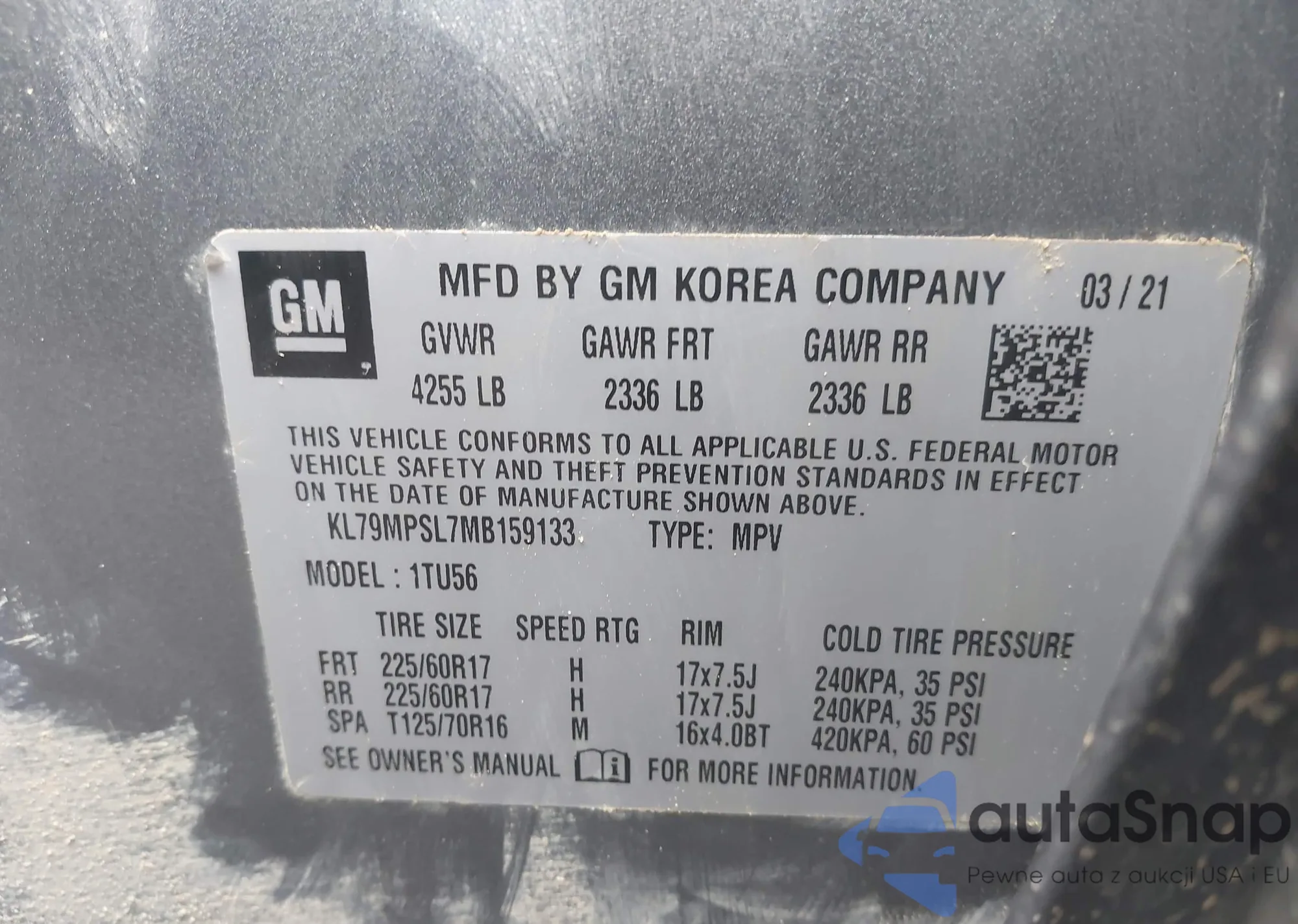 • VIN KL79MRSL7MB123731