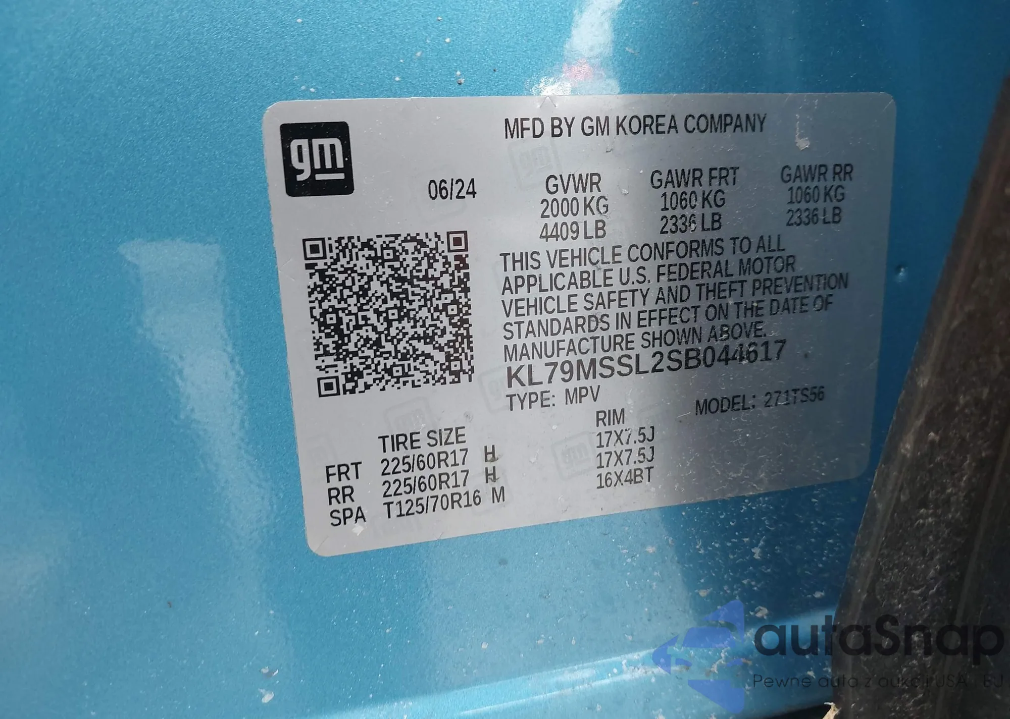 • VIN KL79MMS24MB009583