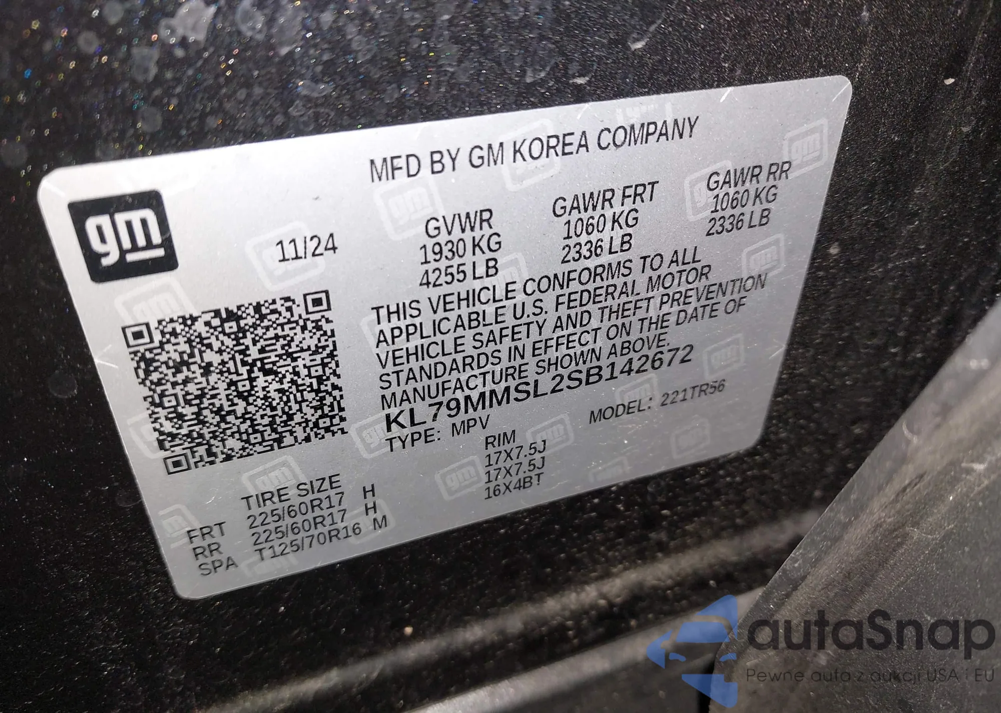 • VIN KL79MMSL2SB142672