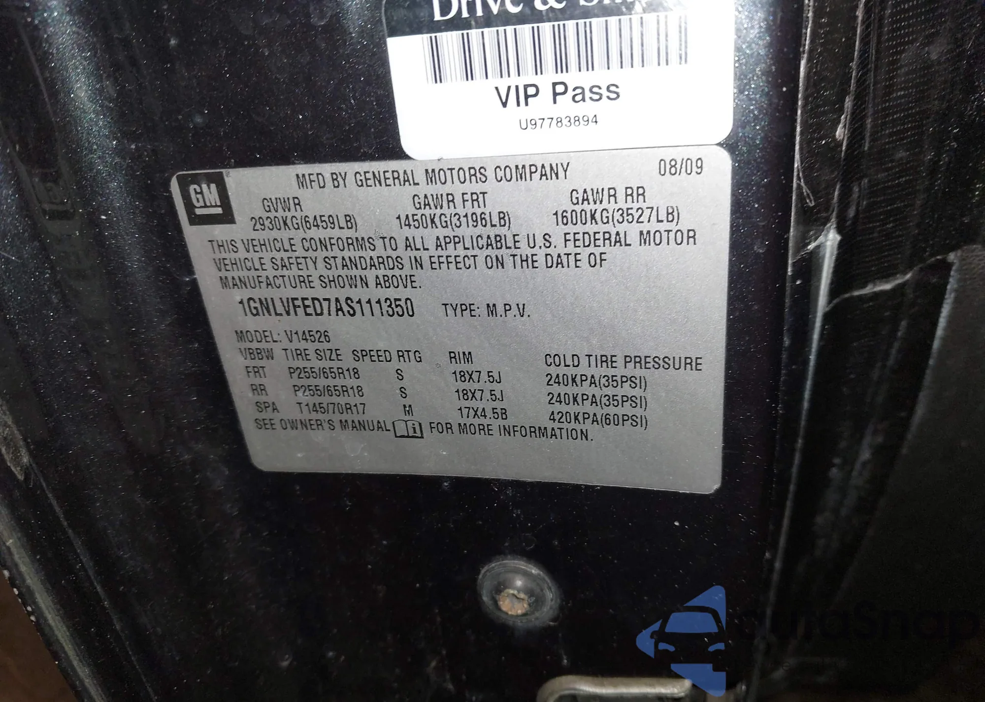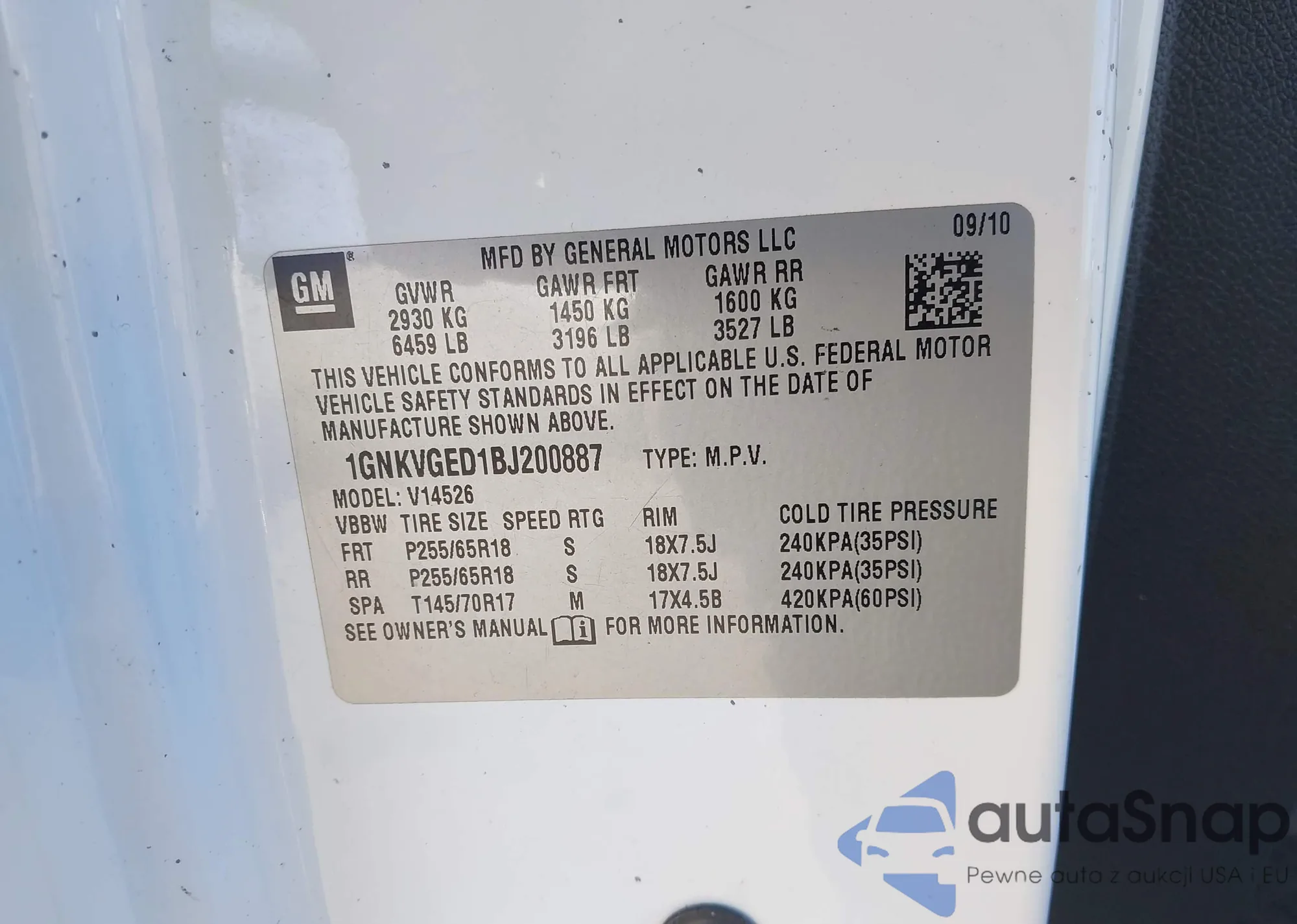 • VIN 1GNKVGED1BJ200887