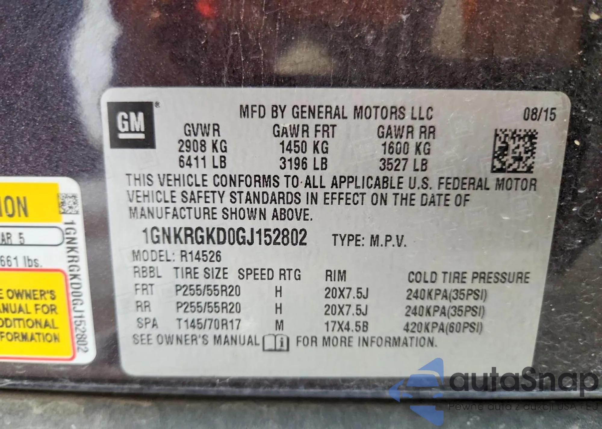 • VIN 1GNKRGKD5FJ265269