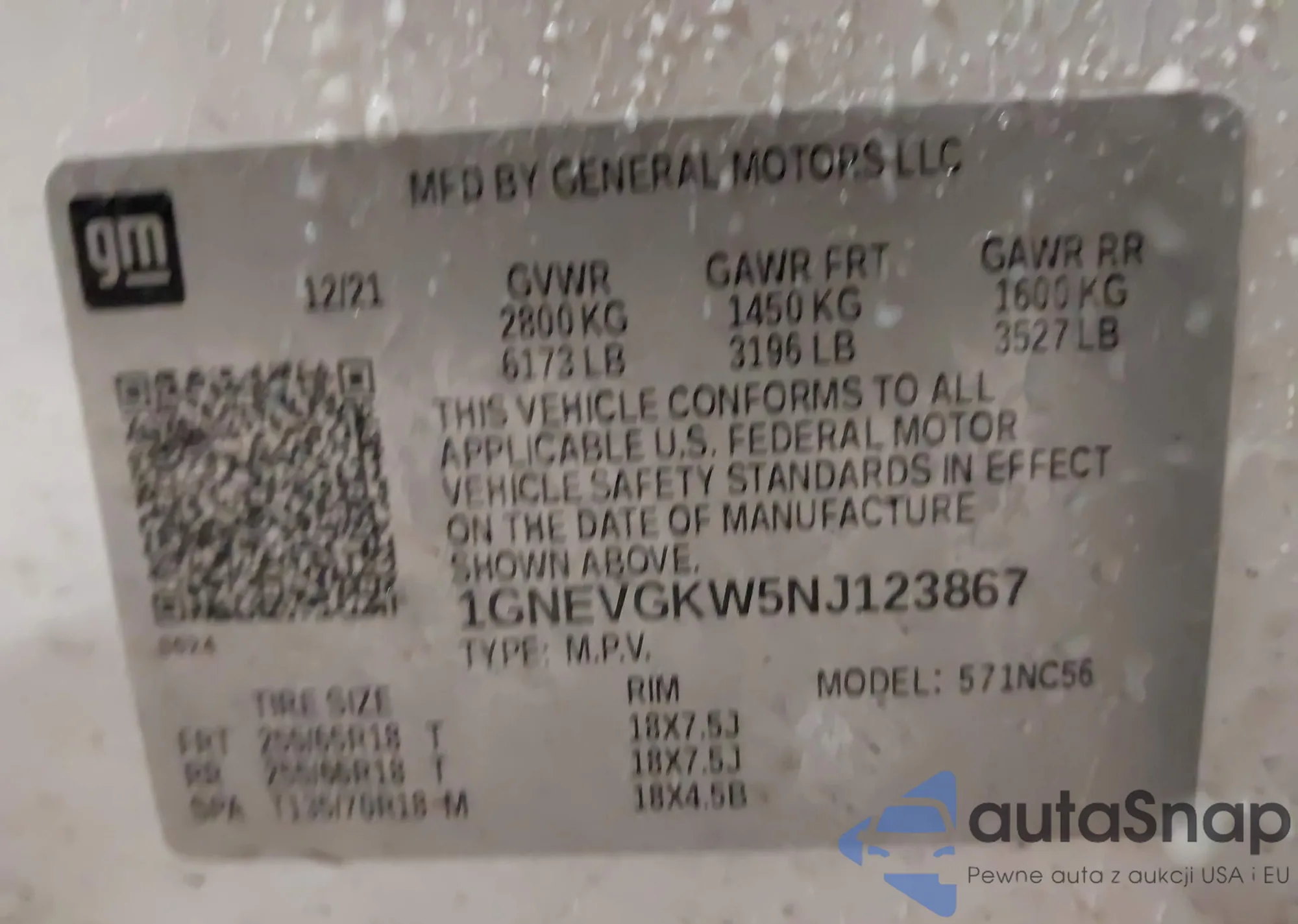 LOT: 43914845 VIN: 1GNEVGKW5NJ123867
