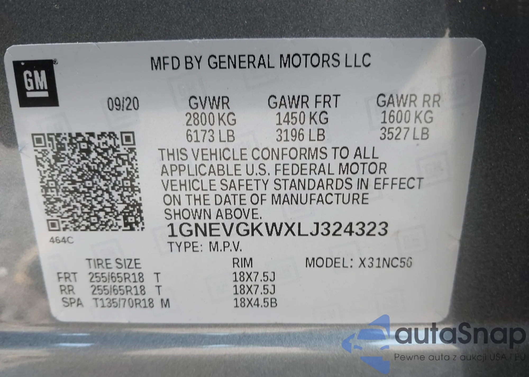LOT: 42400063 VIN: 1GNEVGKWXLJ324323