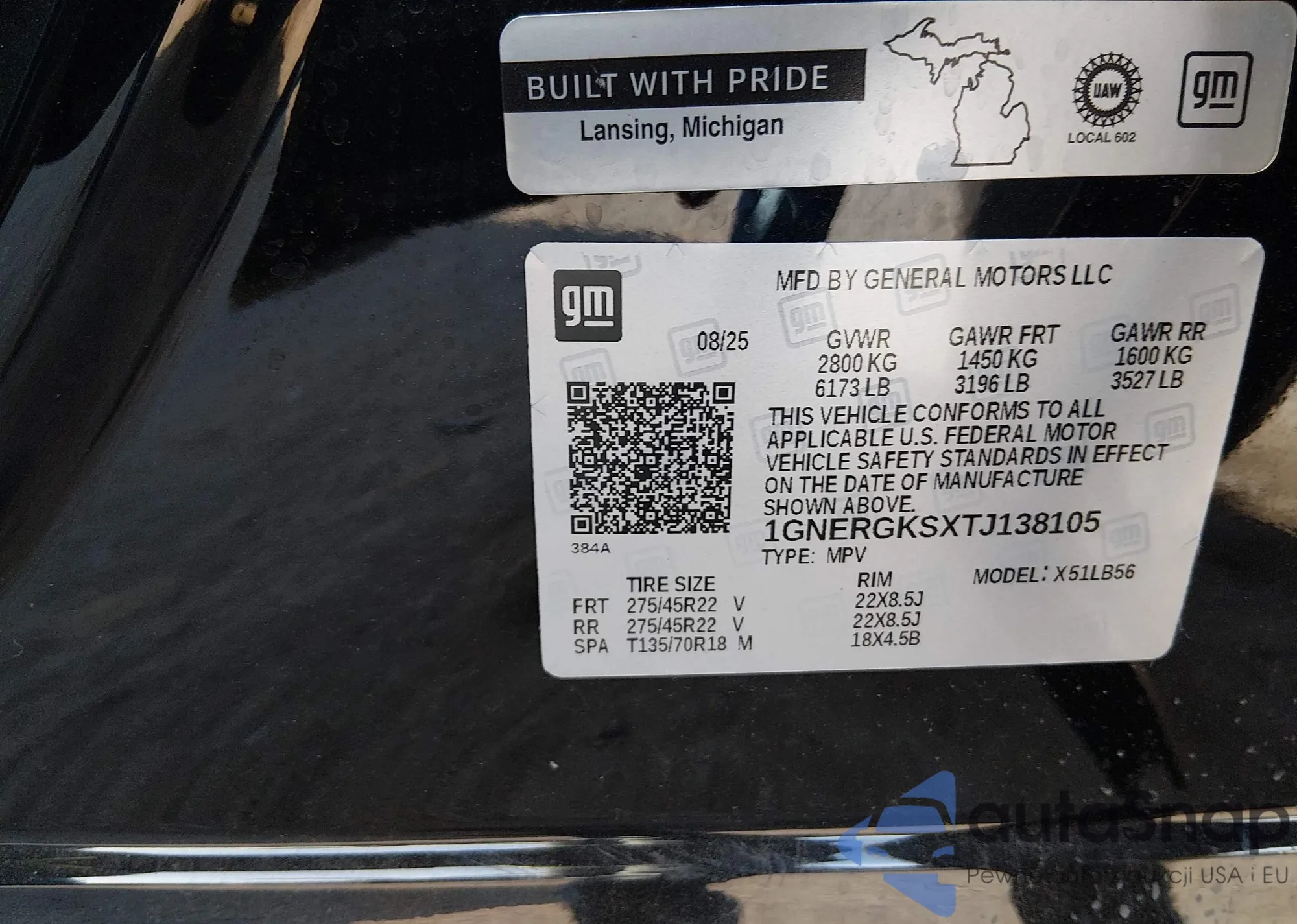 LOT: 43979351 VIN: 1GNERGKSXTJ138105