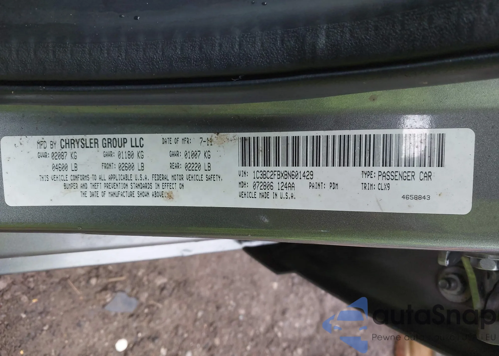 LOT: 44583822 VIN: 1C3BC2FB5BN500718