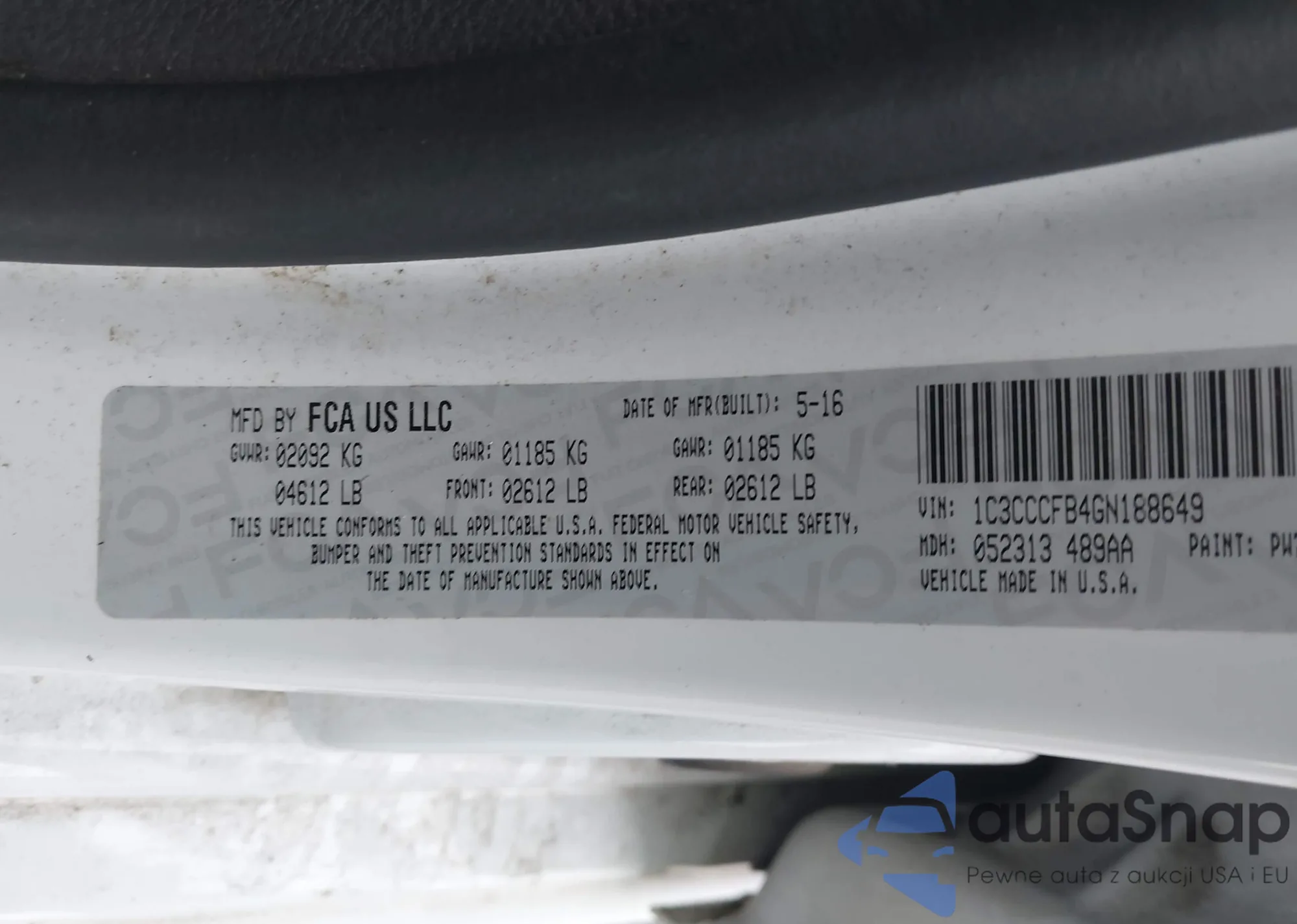 LOT: 43907519 VIN: 1C3CCCFB4GN188649