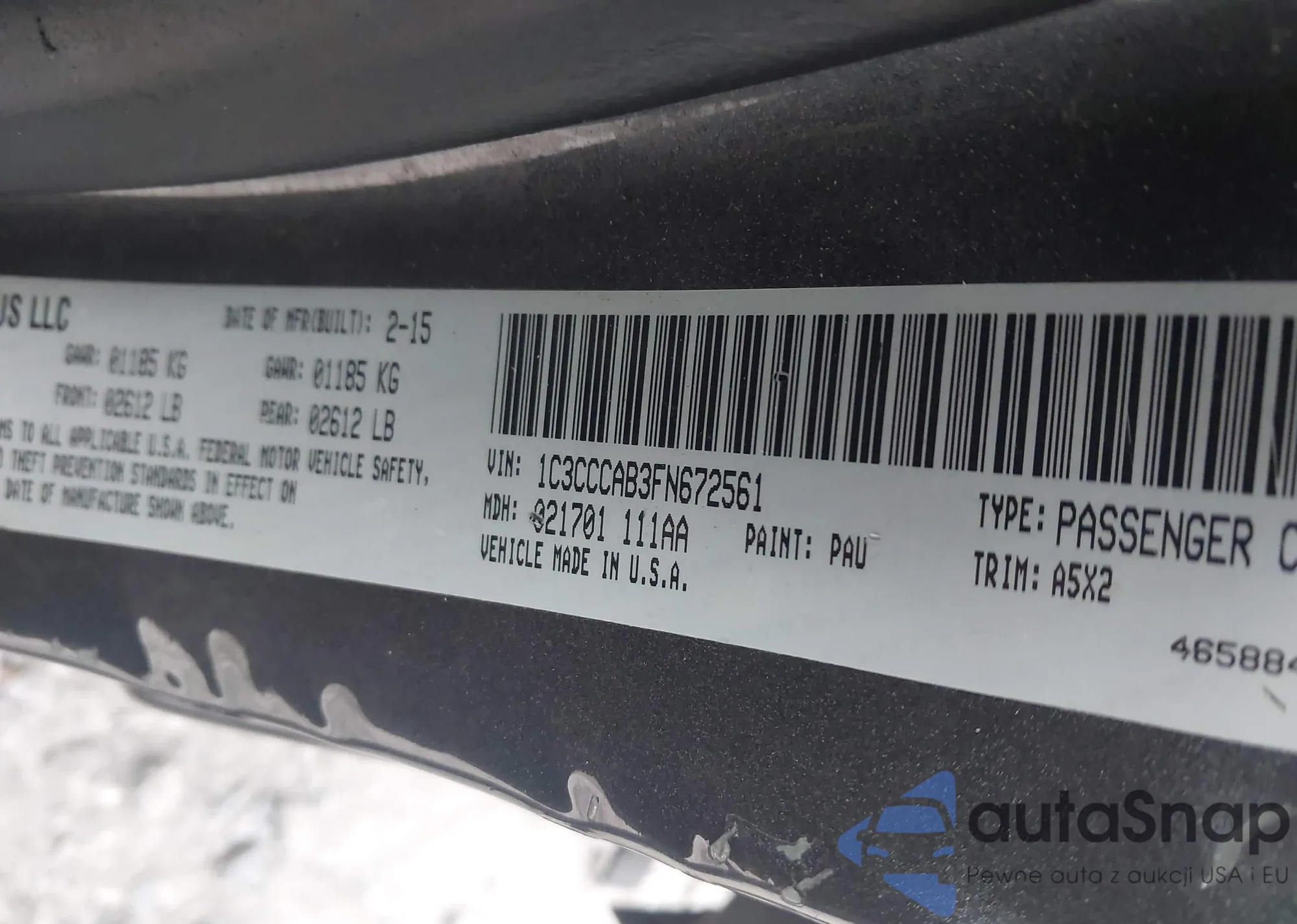 LOT: 43855368 VIN: 1C3CCCAB3FN672561