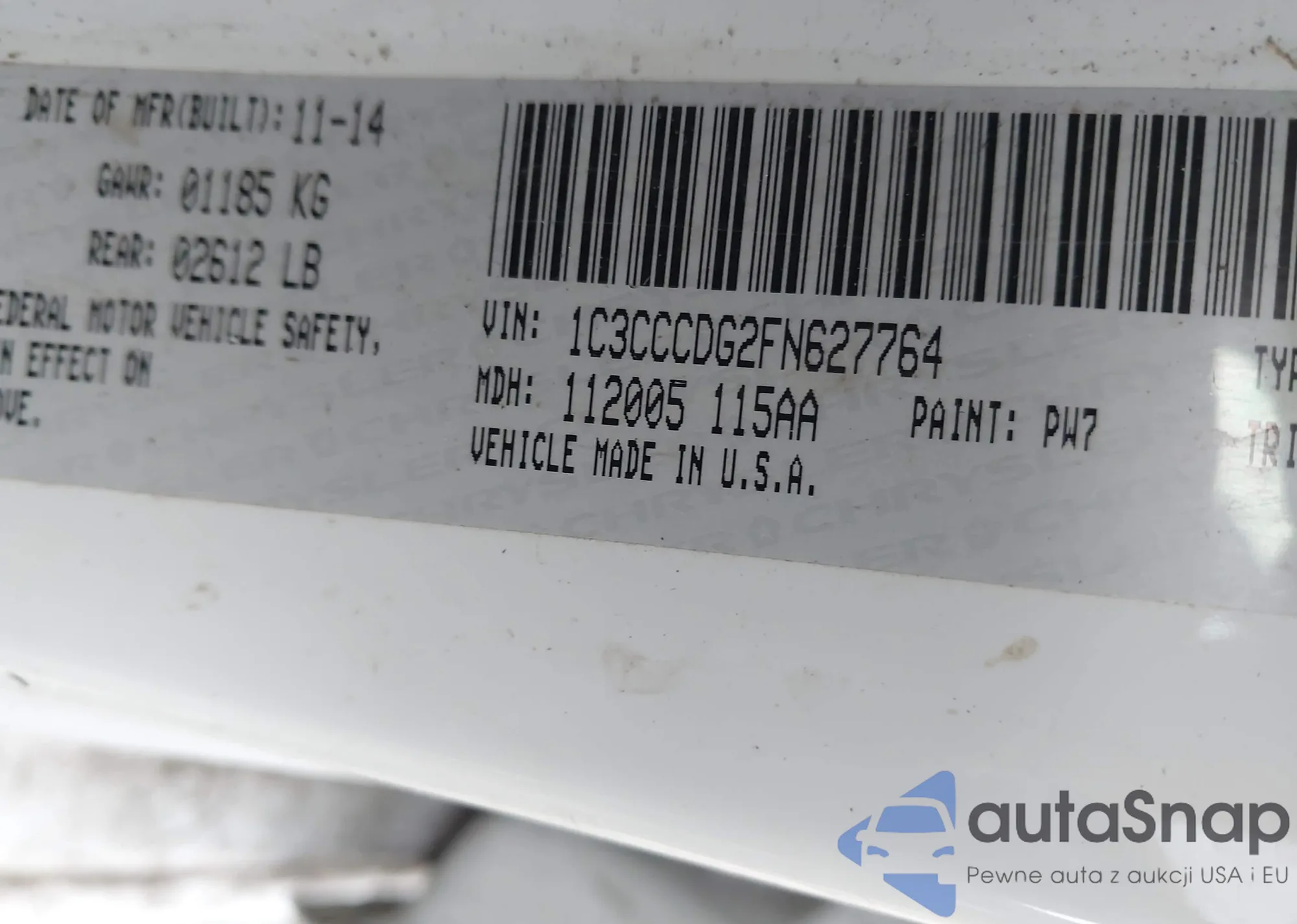 LOT: 44138747 VIN: 1C3CCCDG2FN627764