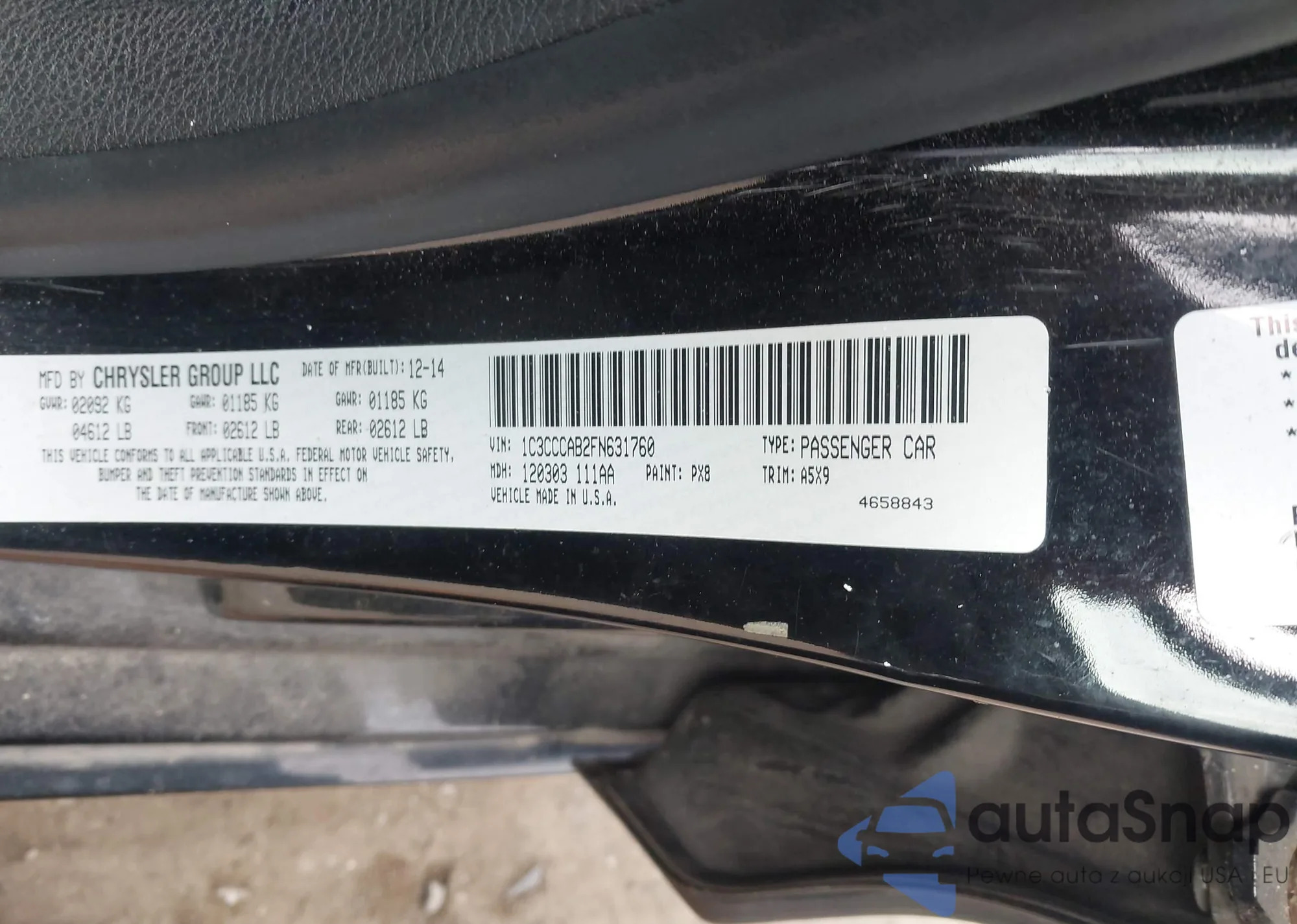 • VIN 1C3CCCAB2FN631760