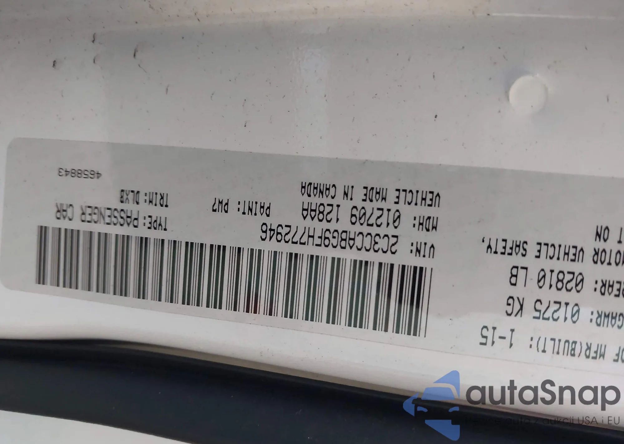 LOT: 43926283 VIN: 2C3CCABG9FH772946
