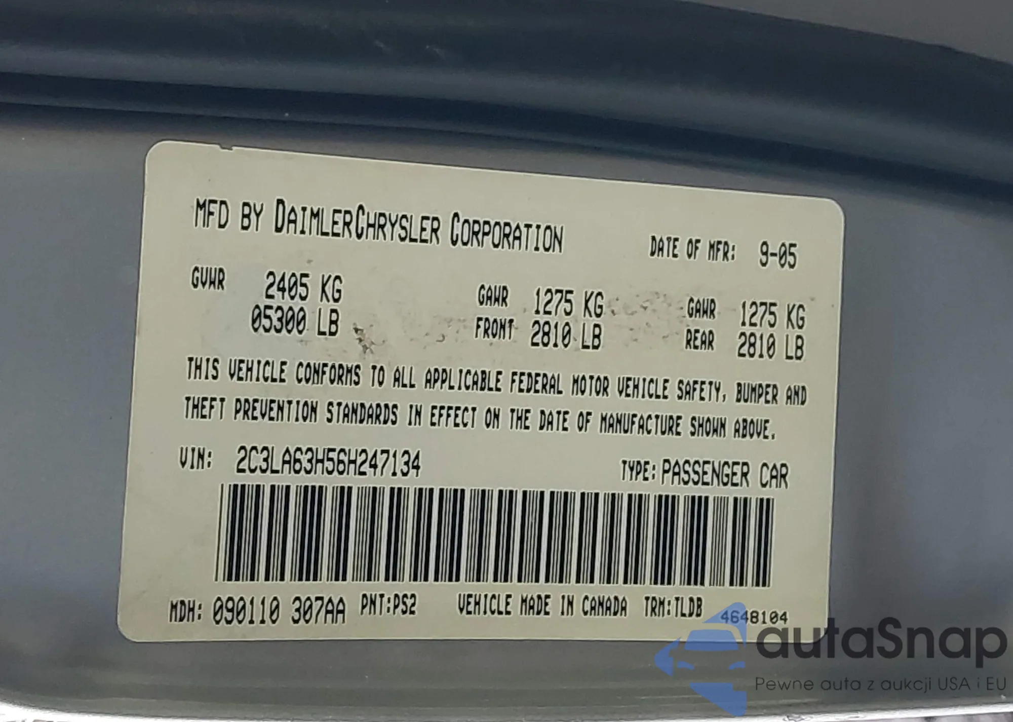 • VIN 2C3LA63H56H247134