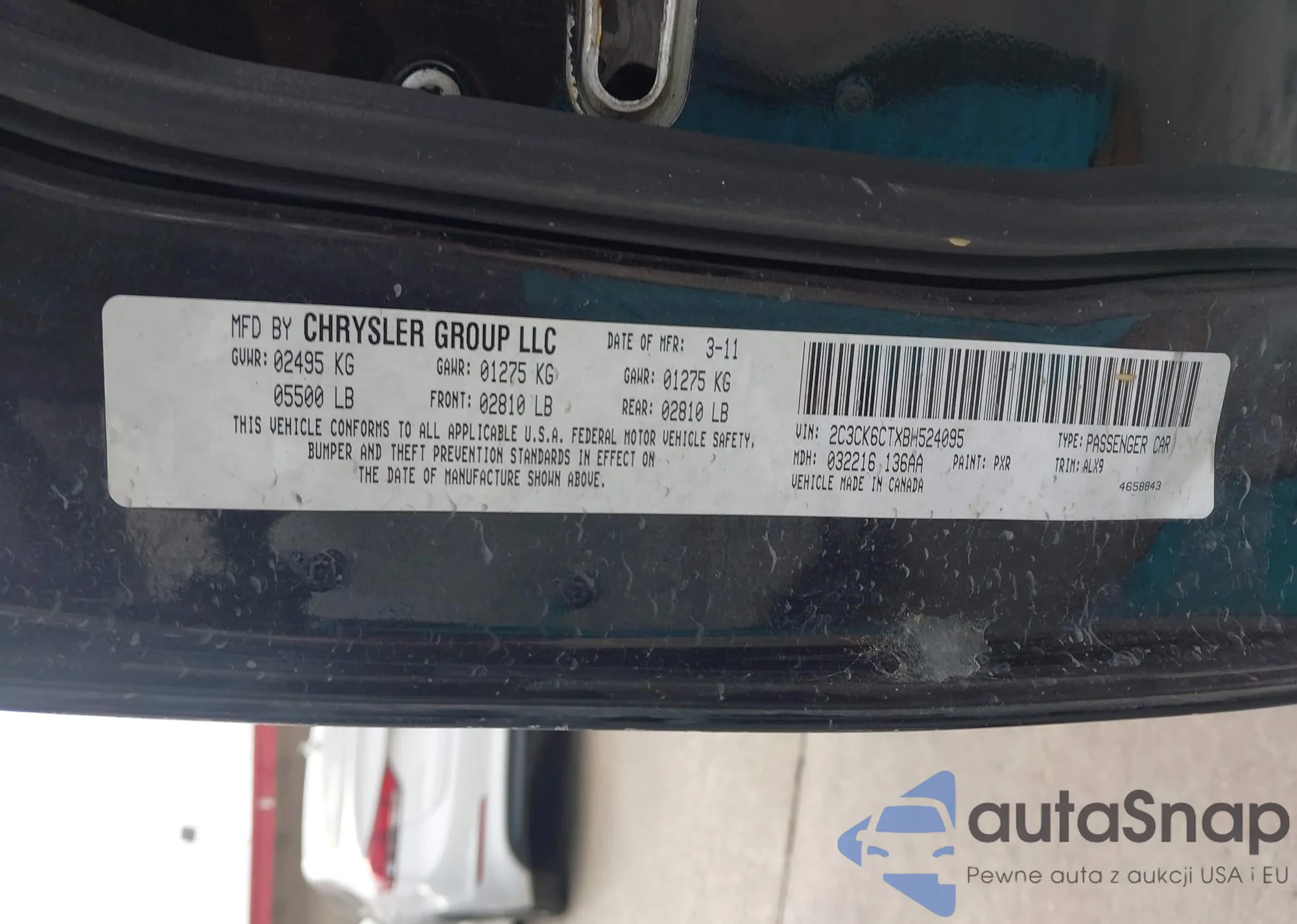 LOT: 44302608 VIN: 2C3CK6CTXBH524095