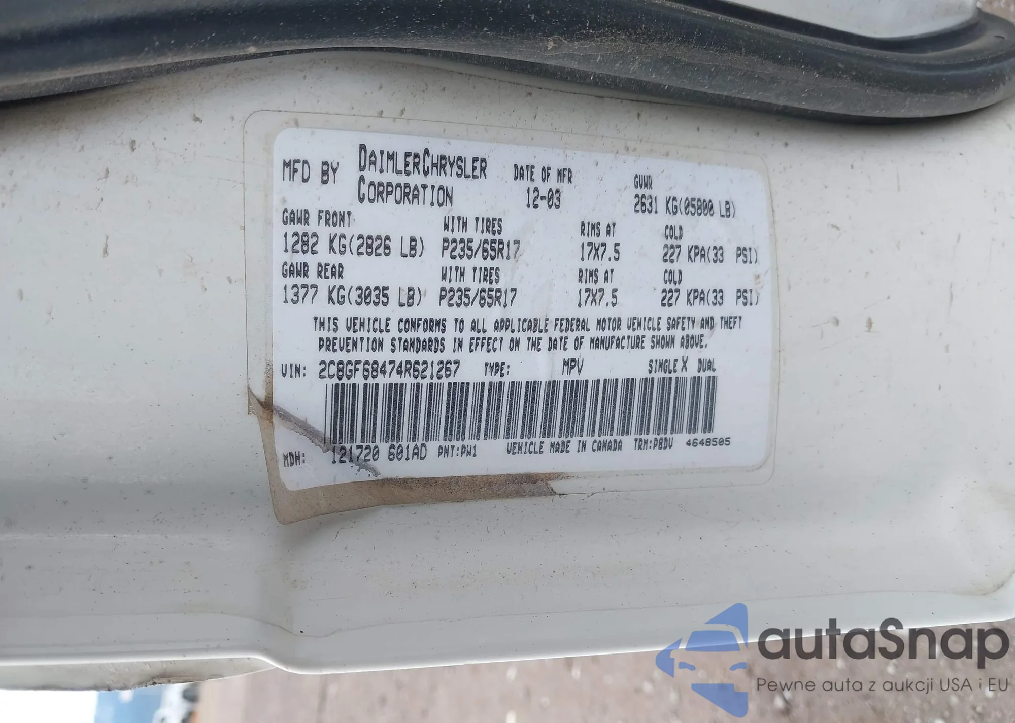 • VIN 2C8GF68474R621267