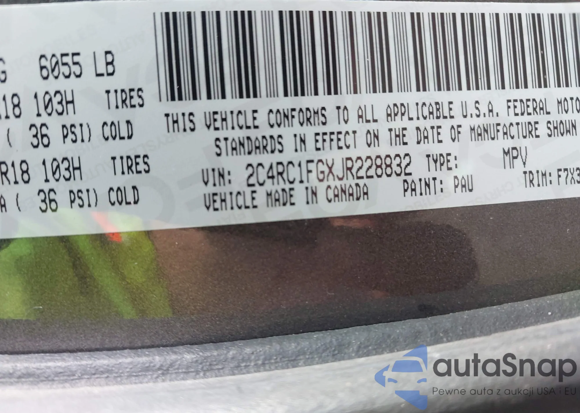 • VIN 2C4RC1FGXJR228832